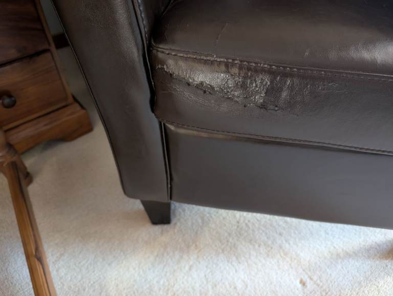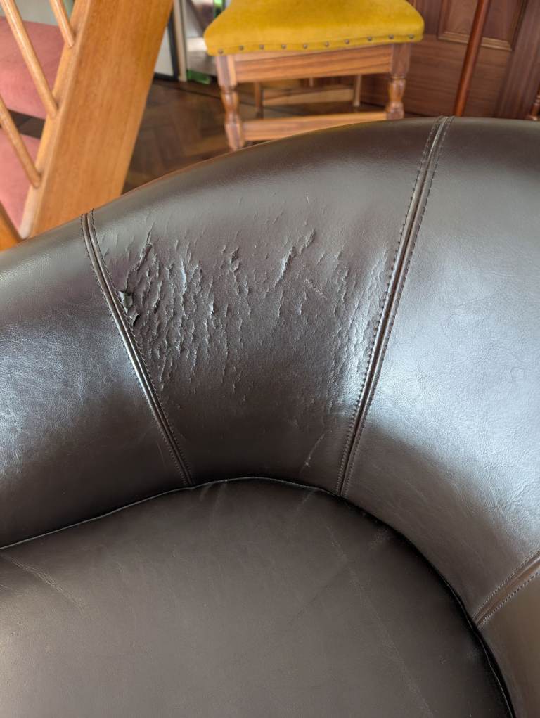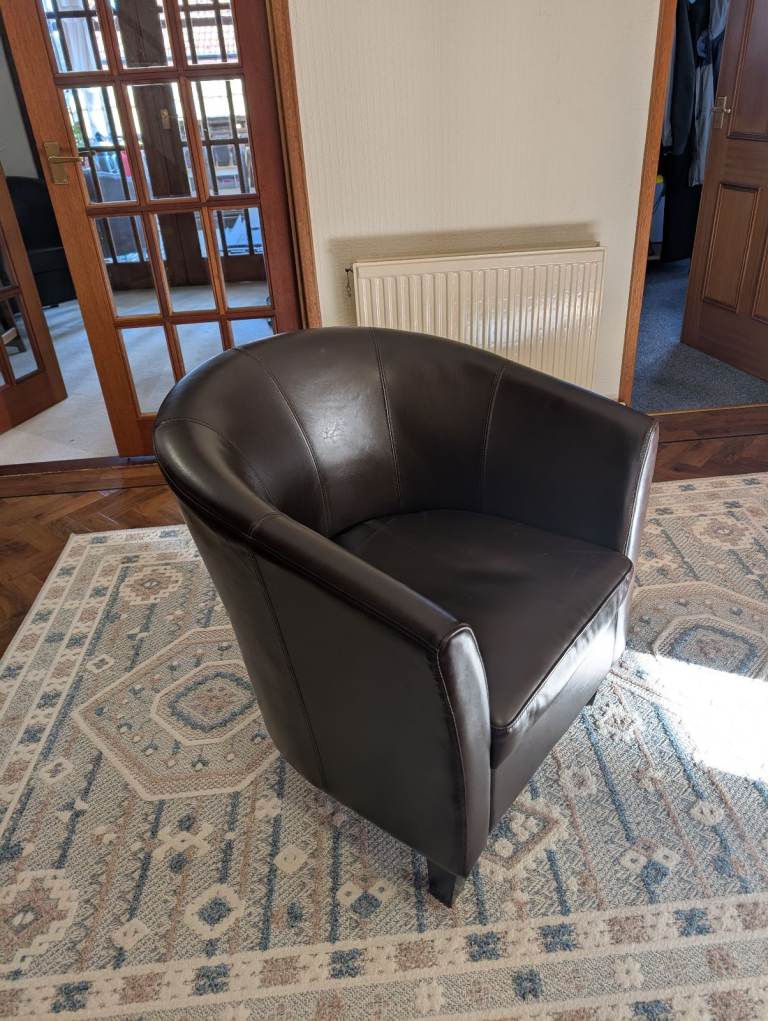Faux leather tub chairs - free to good home. Obvious signs of wear but still functional.