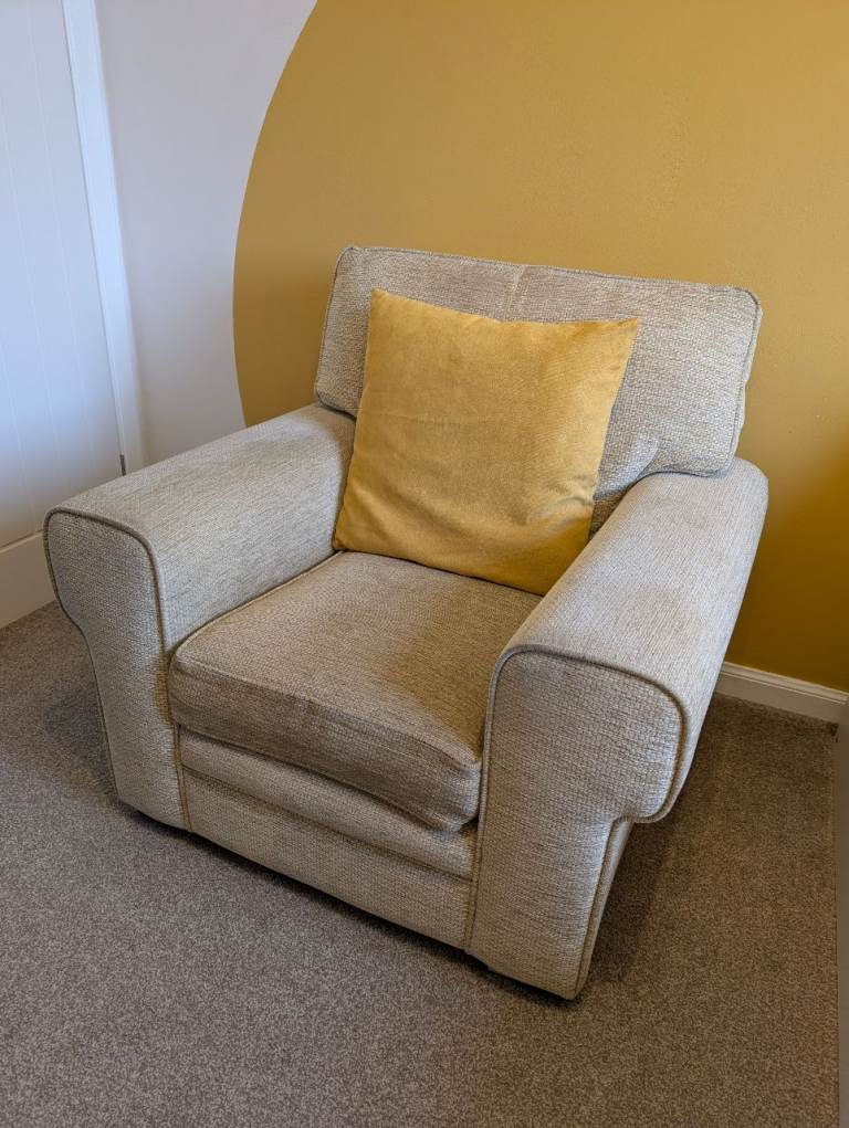 Selling 2 very comfortable fabric armchairs with removable back and base cushions