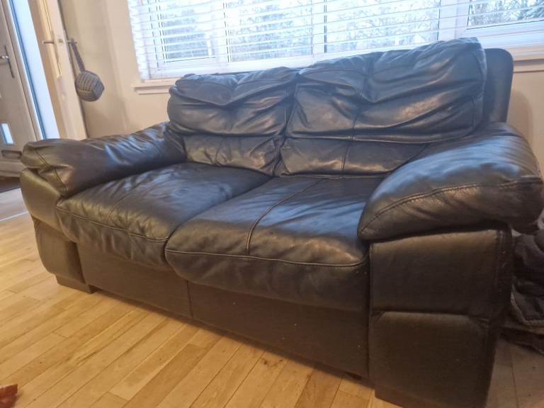 2 Lovely sofas. Soft black Italian leather sofas – one three seater and one two seater. Cost £2700 new and are in good but used condition with no rips or tears. Approximately 10 years old.