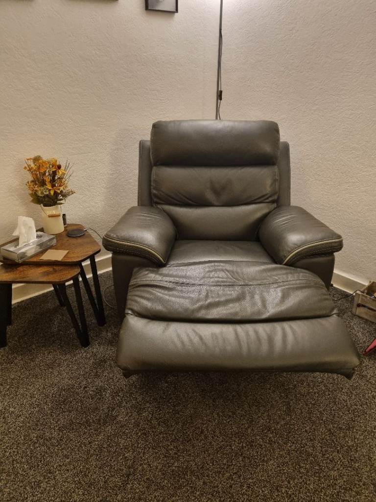 Leather 3 seater power recliner and chair power recliner Navy