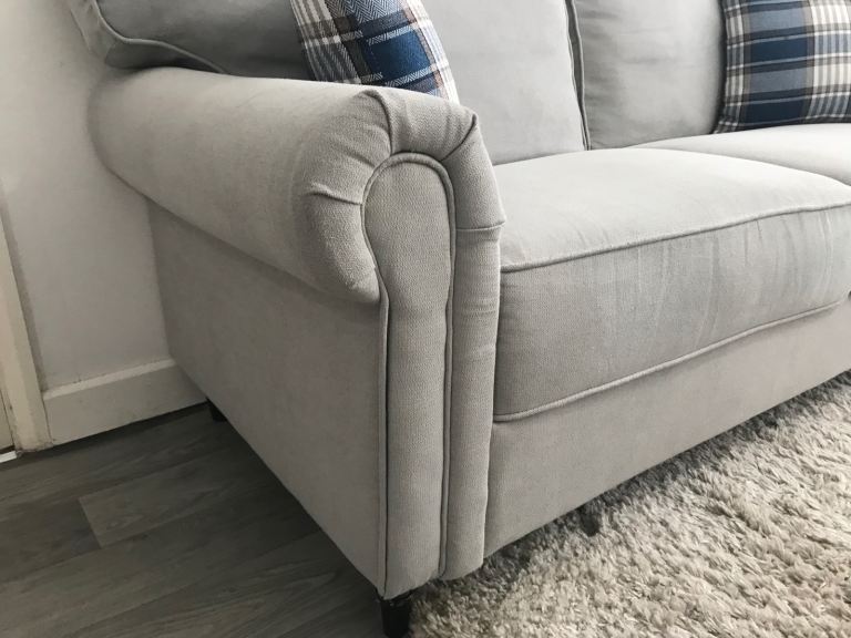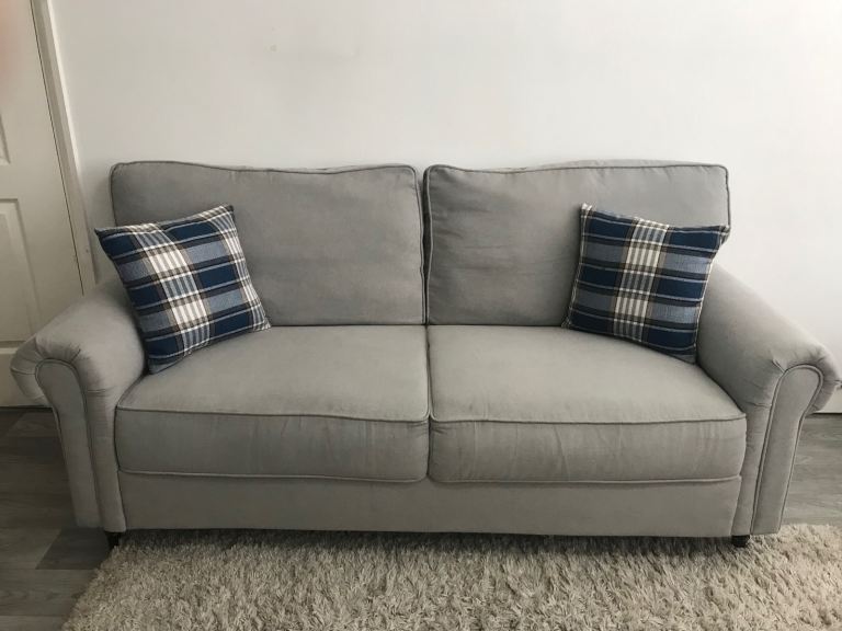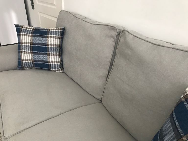Selling two Grey 3 Seater Sofa Couches with Throw Pillows.