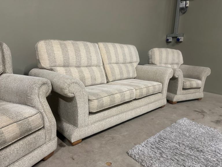 Cream pattern 3 seater sofa & 2 armchairs