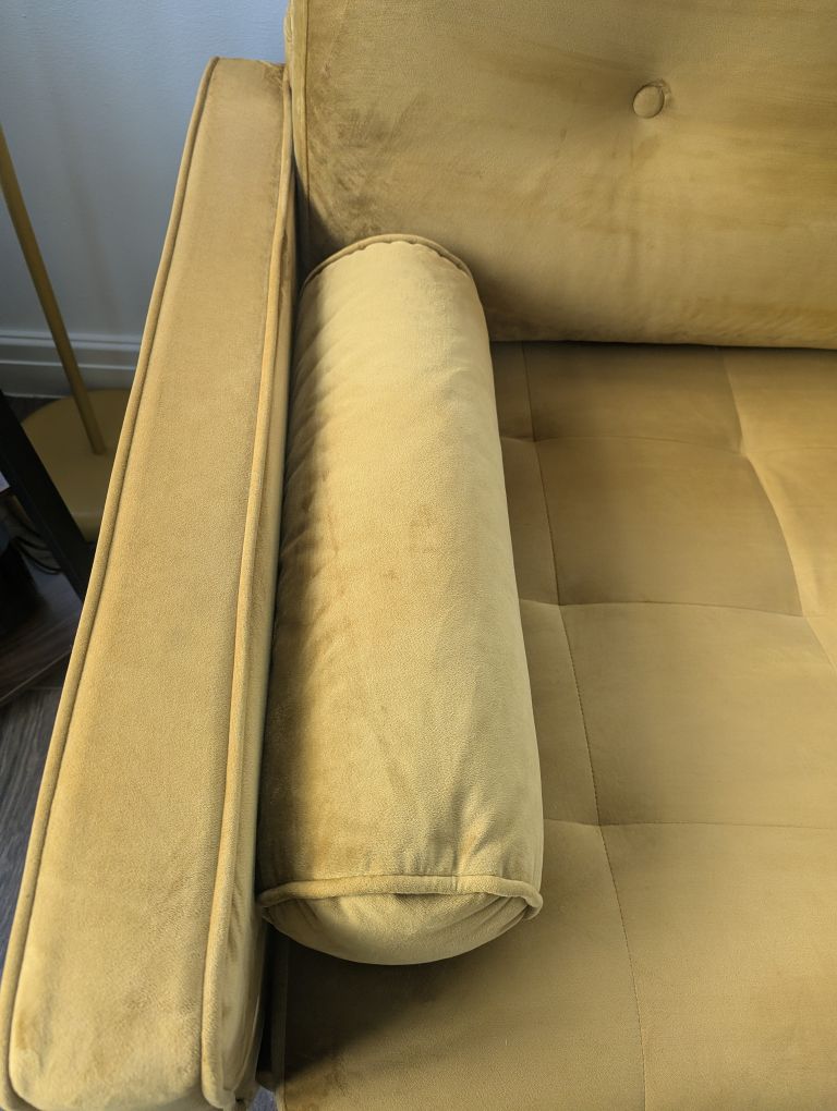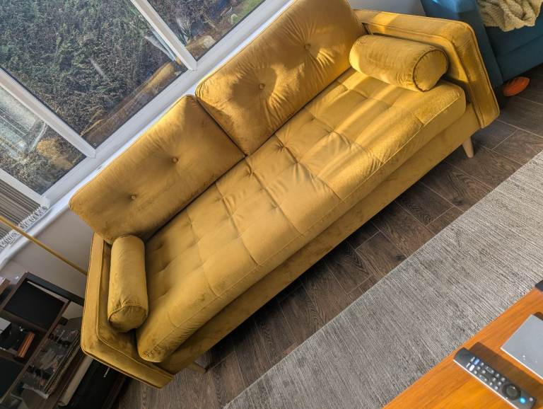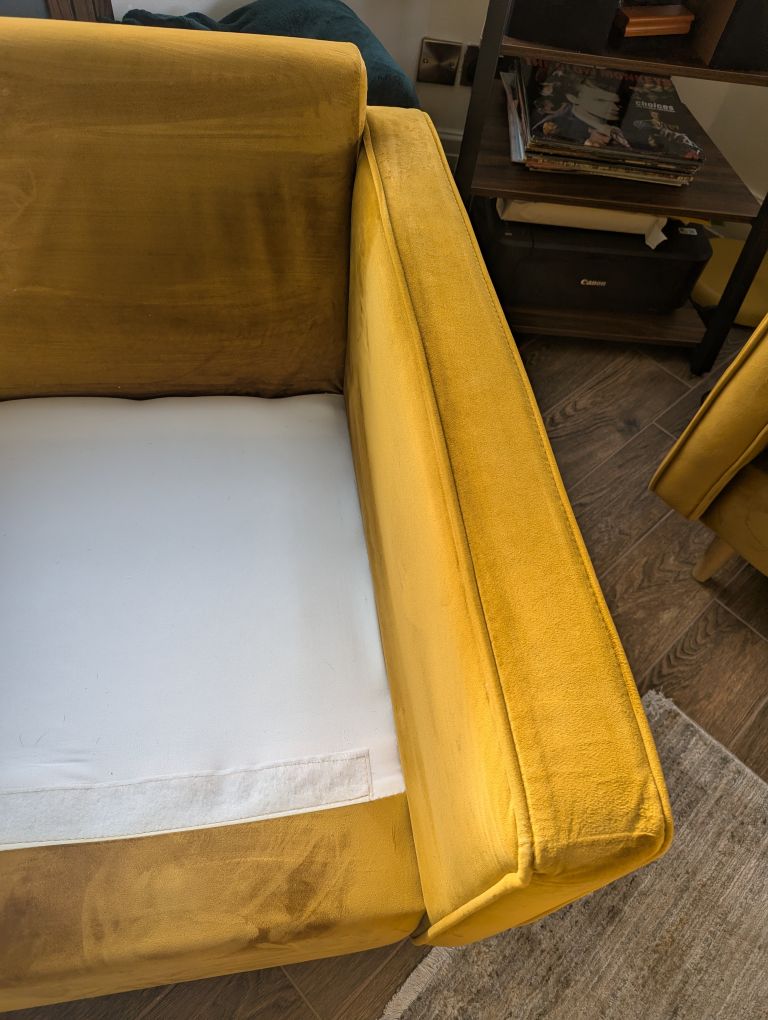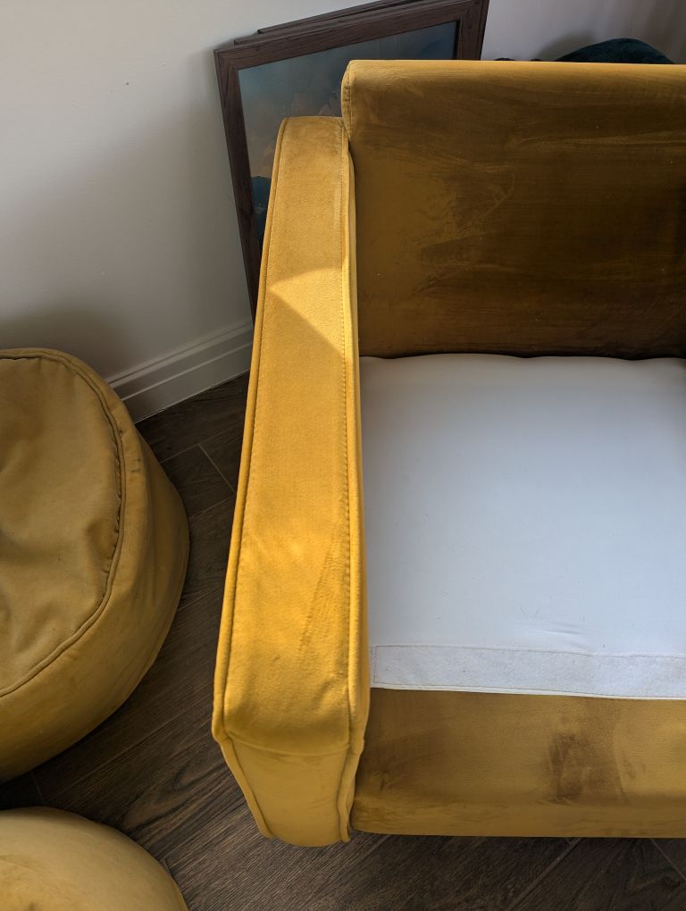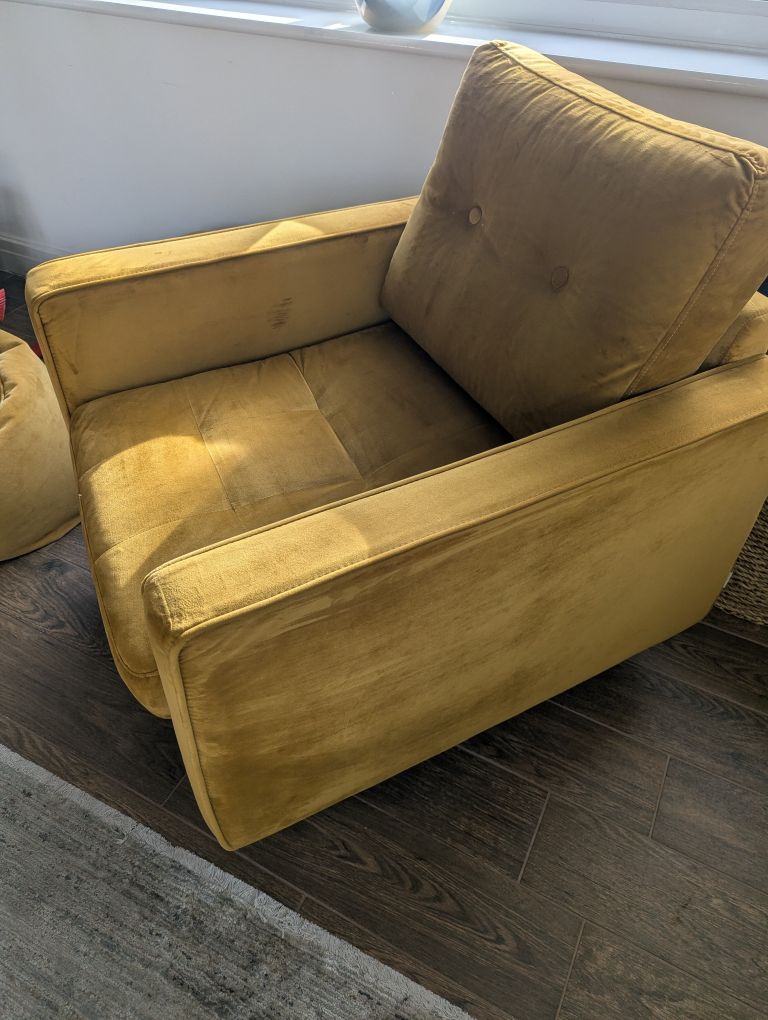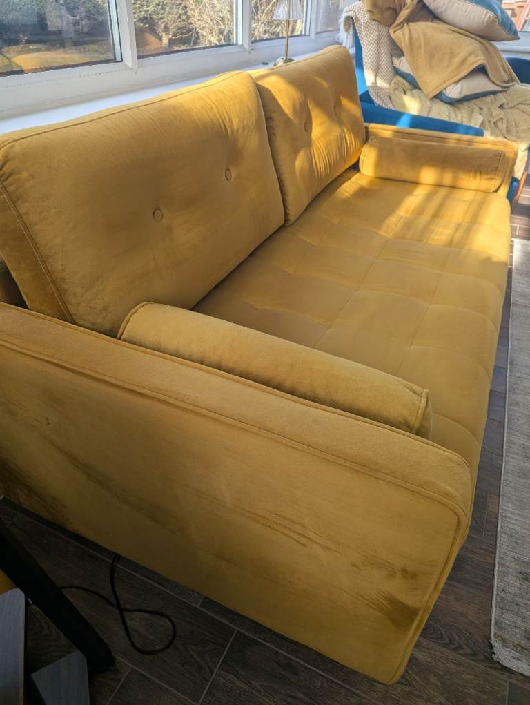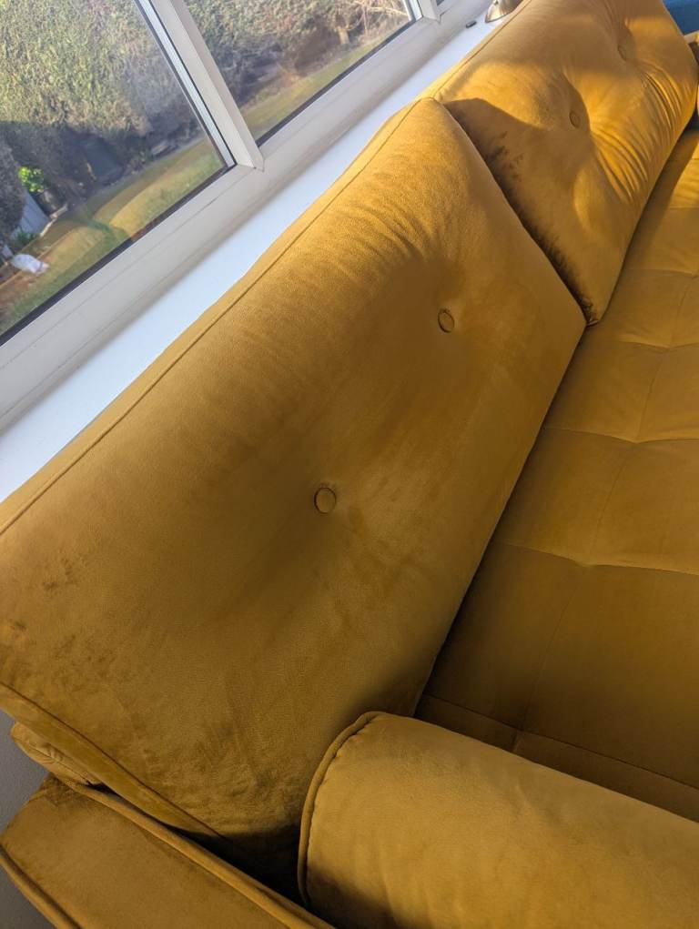 Mustard velour 2 pce suite set, in excellent clean condition...no stains or tears. Buyer collects from M24 Rhodes Middleton.