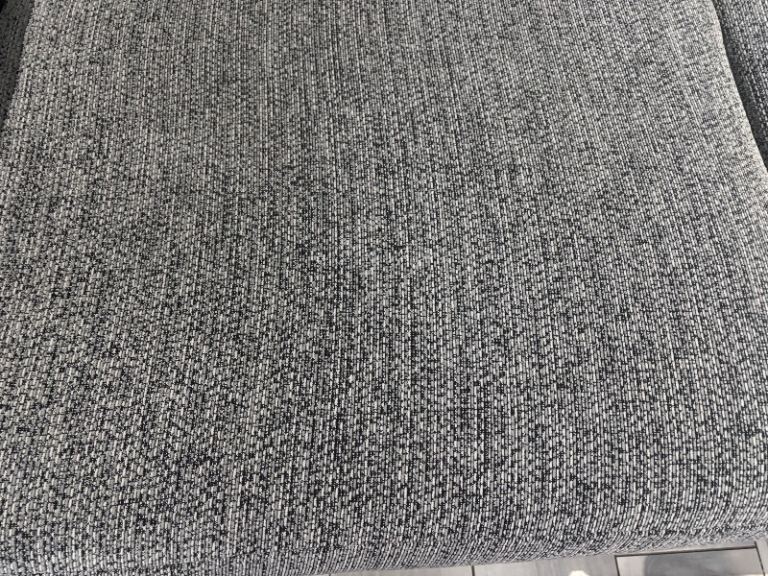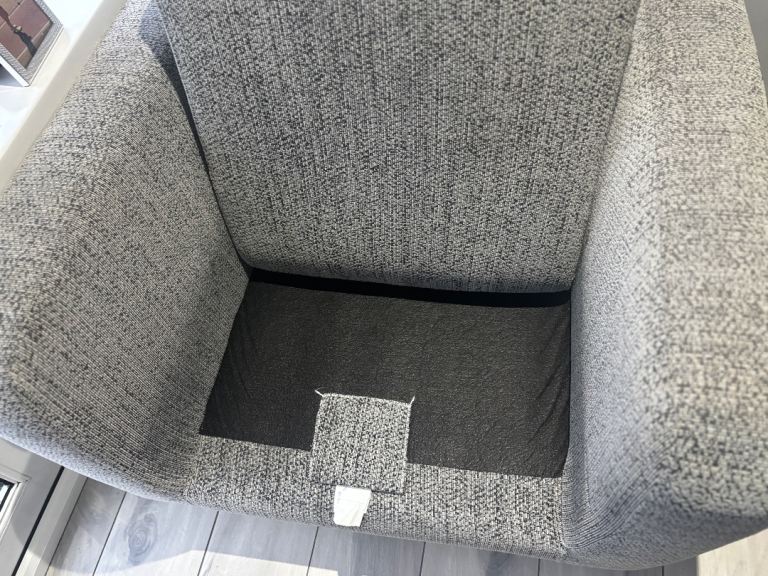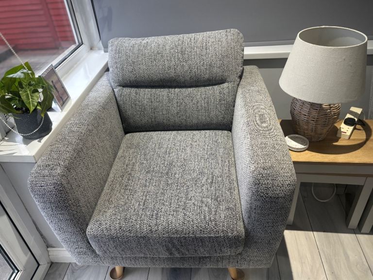 Beautiful 3-seater sofa and matching armchair in a grey woven fabric, both in immaculate condition.