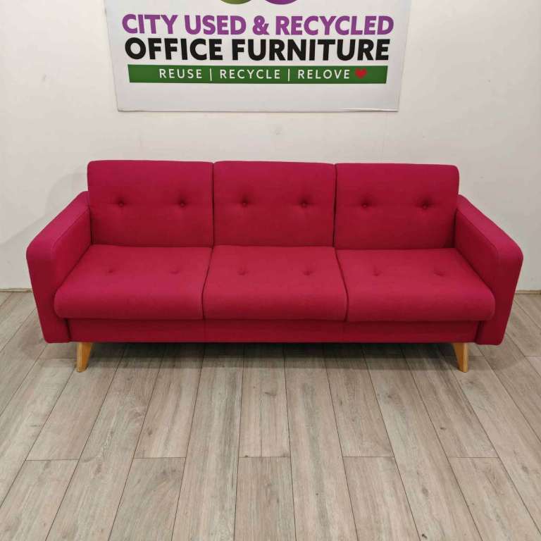 3-Seater Sofa, Pink Fabric w/ Oak Legs - NATIONWIDE DELIVERY!