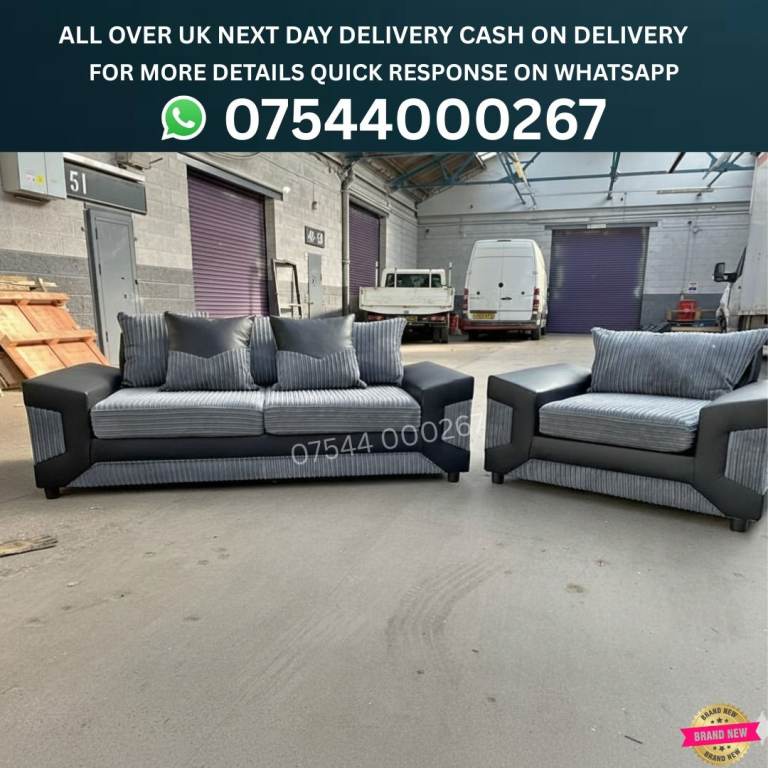 4 seater blue/grey fabric sofa. Soft, comfortable and spacious, perfect for movie nights. Extra large seating space (200cm+)