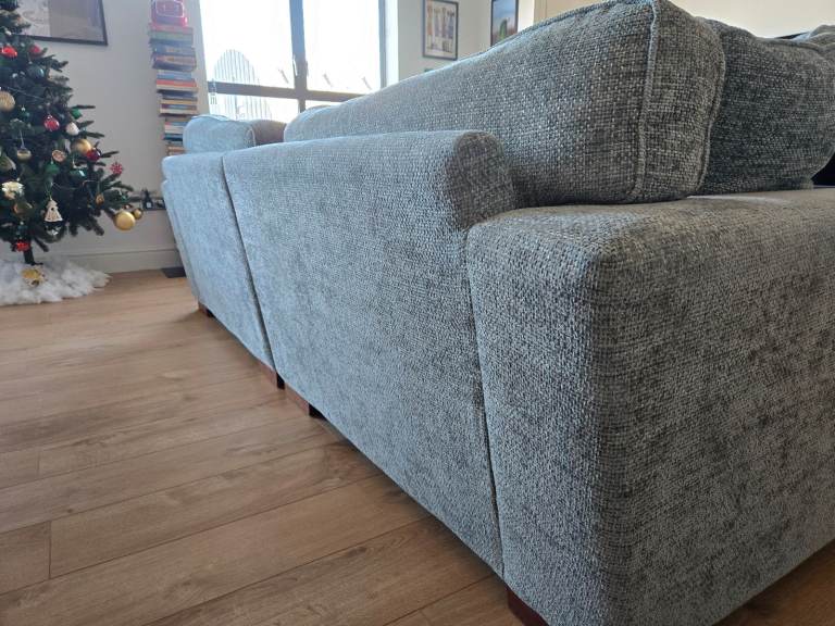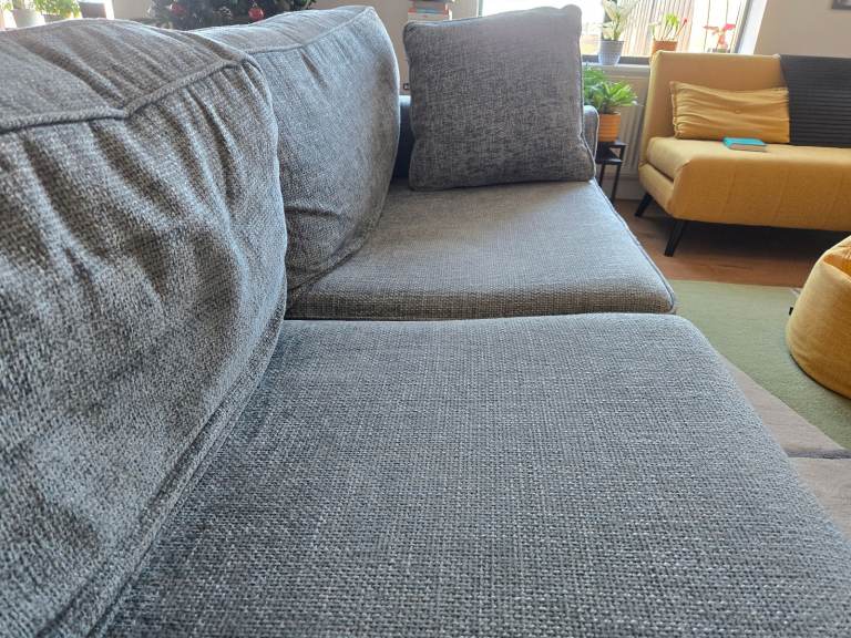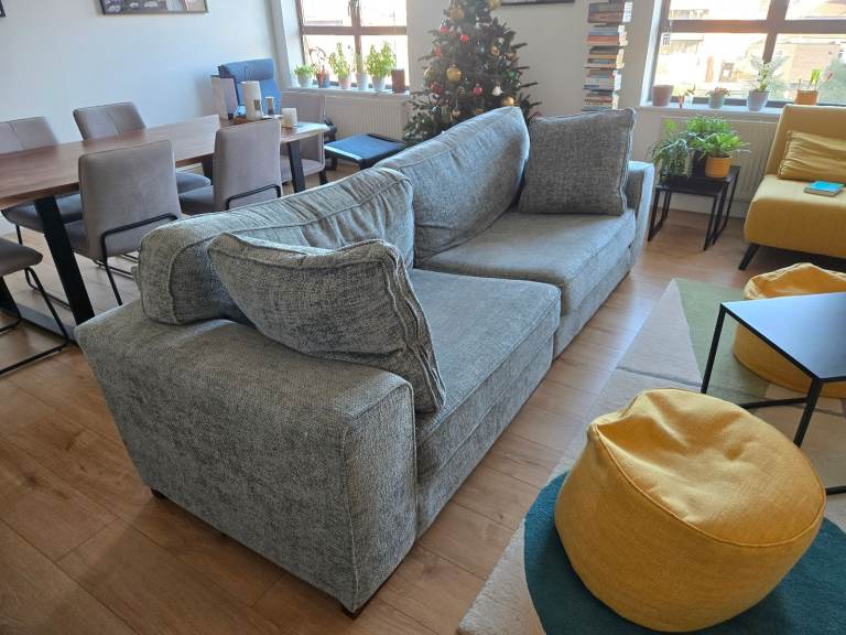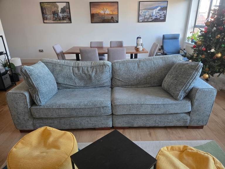 Posting for 8+ years4 seater blue/grey fabric sofa