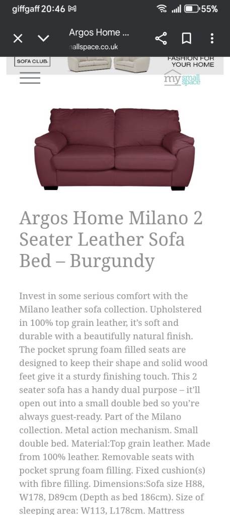 Posting for 2+ yearsArgos Milano 2 seater leather Sofa bed