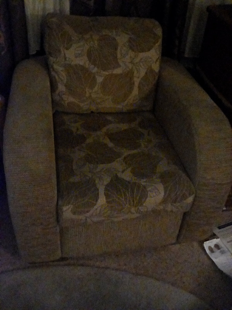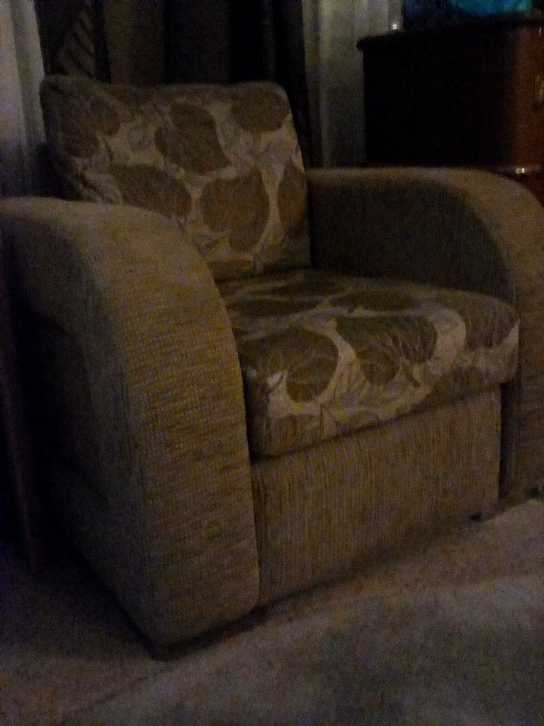 This is an arm chair with a retro style design very solid , it's part of a 3 piece suite that I have in.my static caravan..but I am in my own so don't need 2 arm chairs . And I need space ..