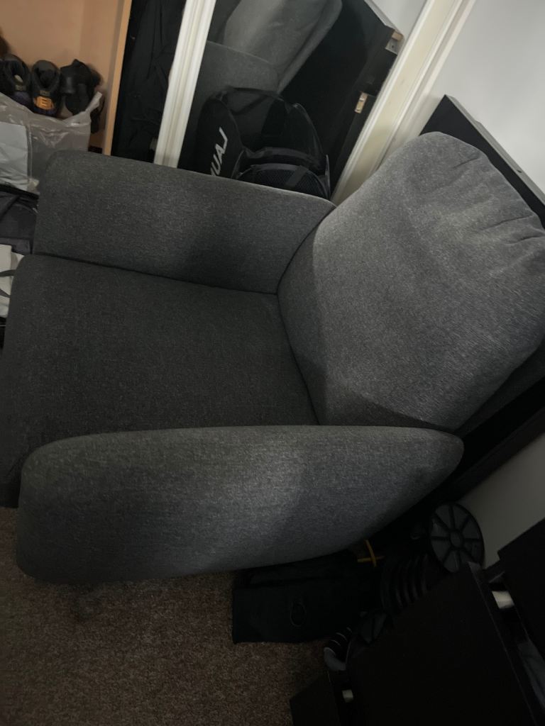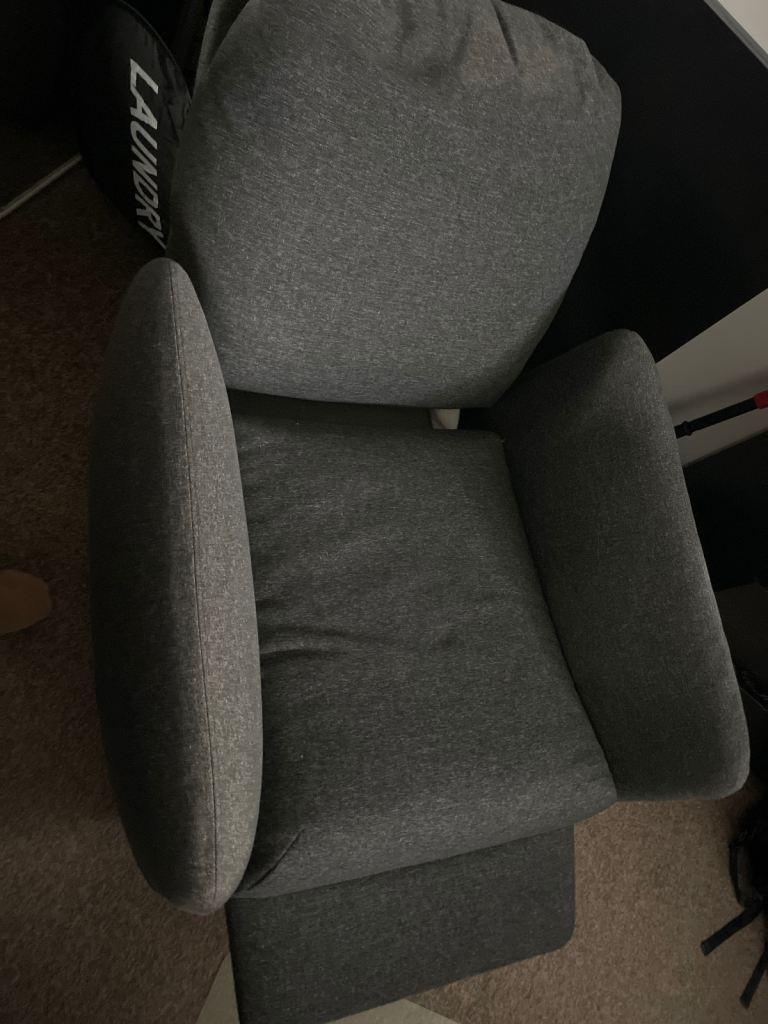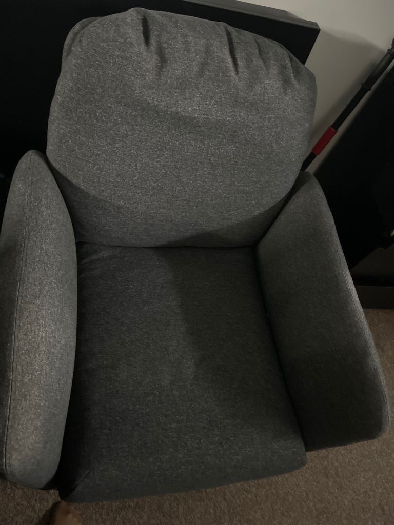 For anyone looking for a very comfortable chair for their office, bedroom, or living room, I recommend this chair. It's luxurious and comfortable to relax on or sit on, even for long periods. It's clean and hasn't been used much. I recently moved to a smaller space, so I can't take it with me.