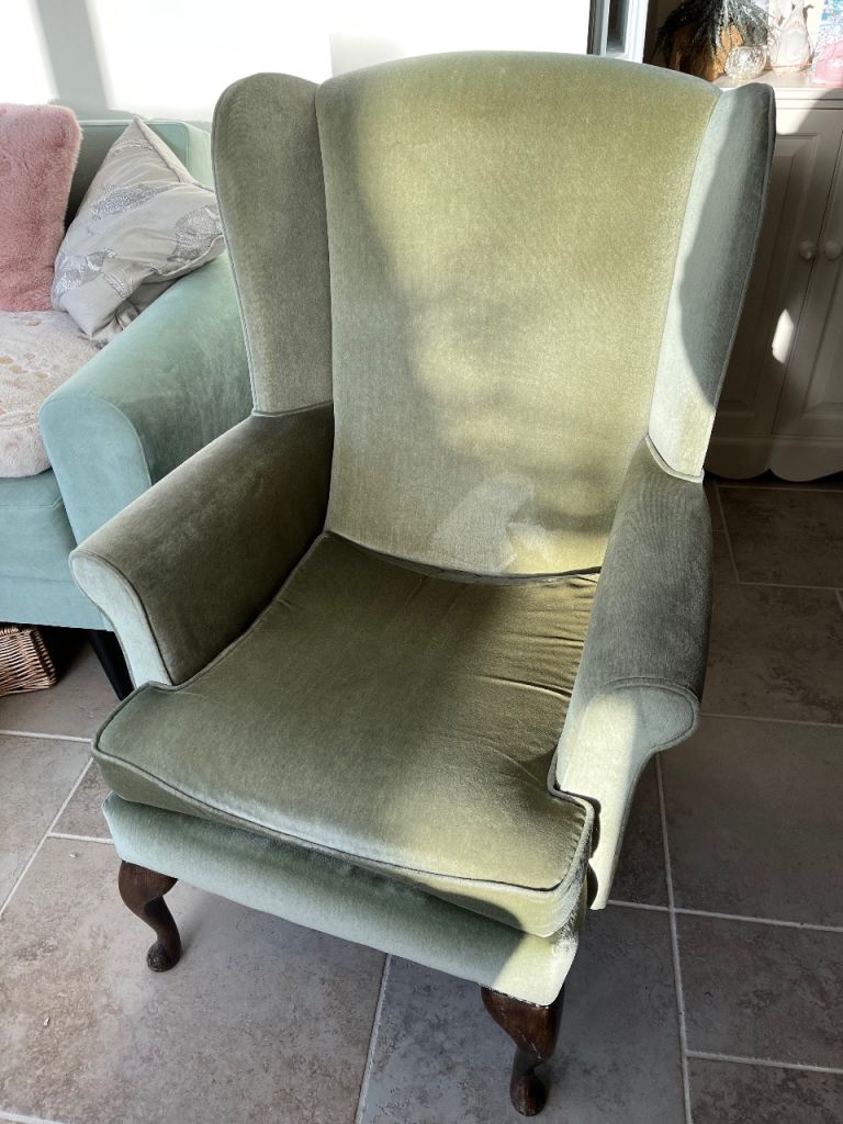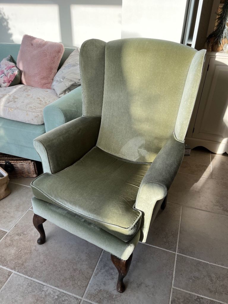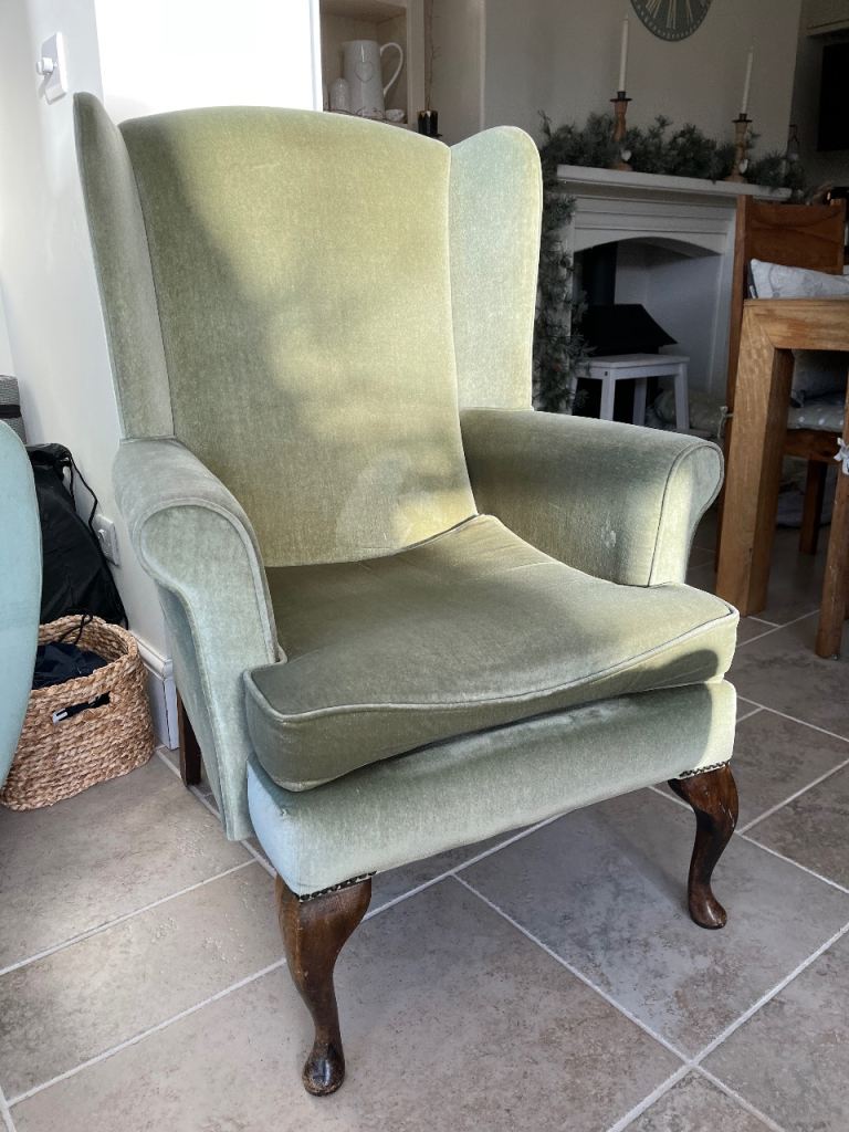 Armchair - winged back, green