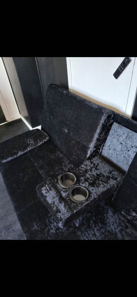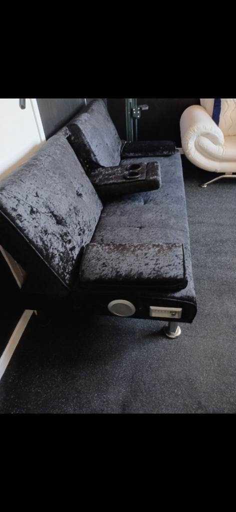 Is practically bran new used for gaming room has pull down sturdy cup holder table and bluetooth speakers compatibility