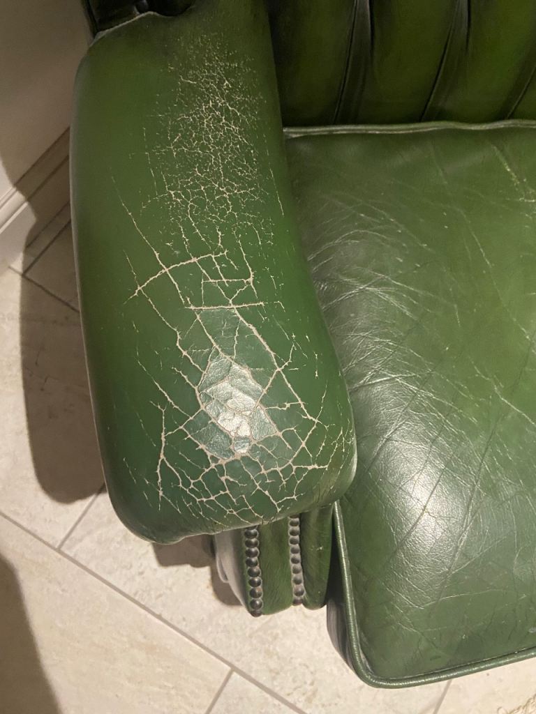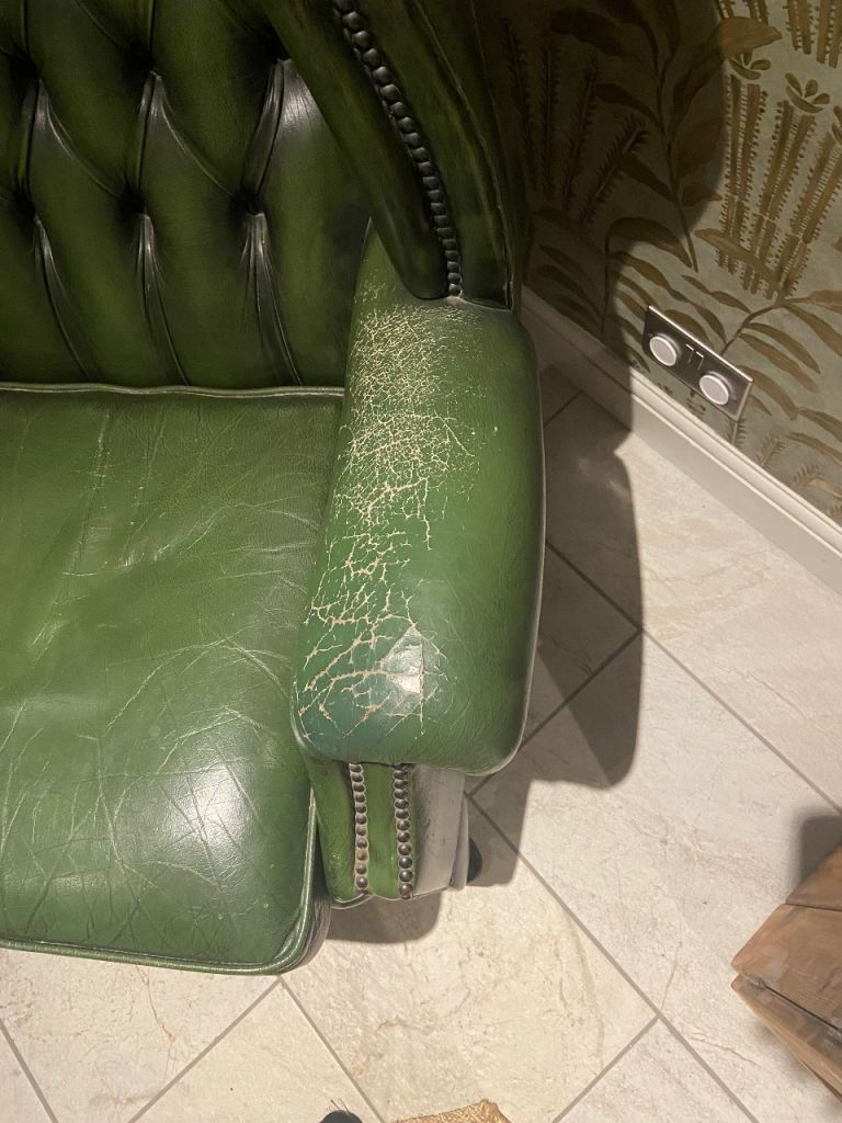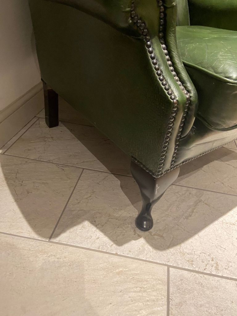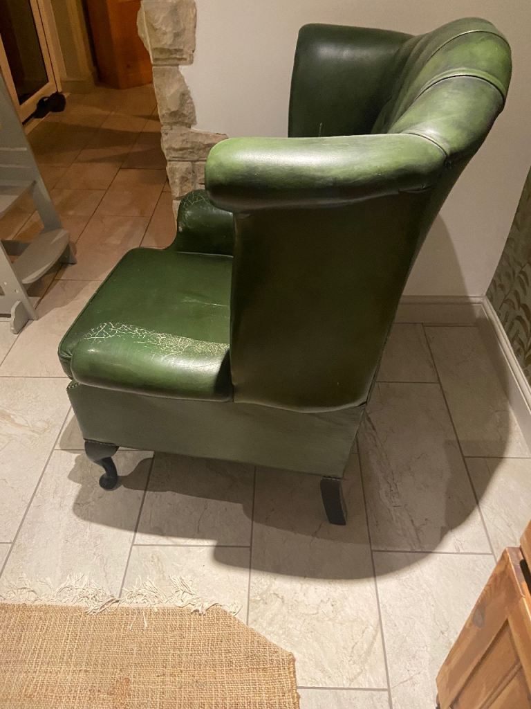 Classic winged back chair. I’ve had for a while but having to sell due to needing to convert the dining room into a guest room. It has naturally worn armrest la but no rips, adding lots of character