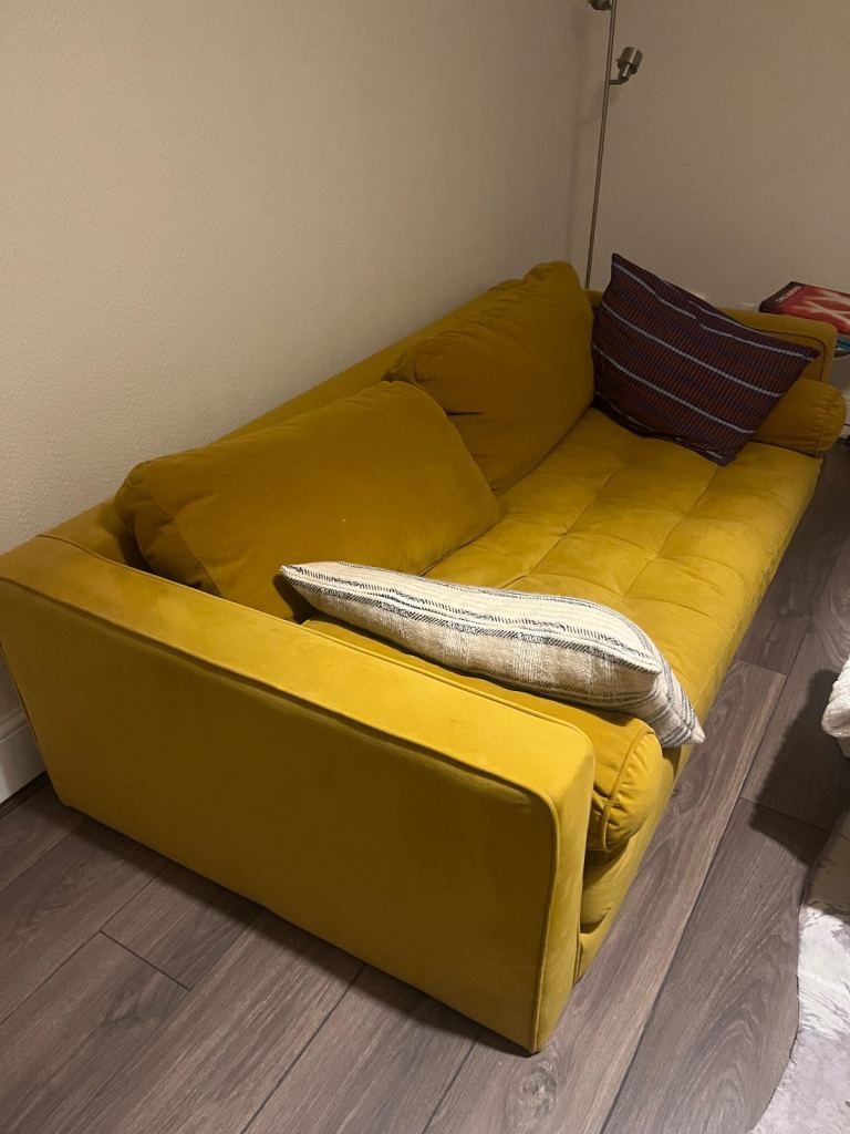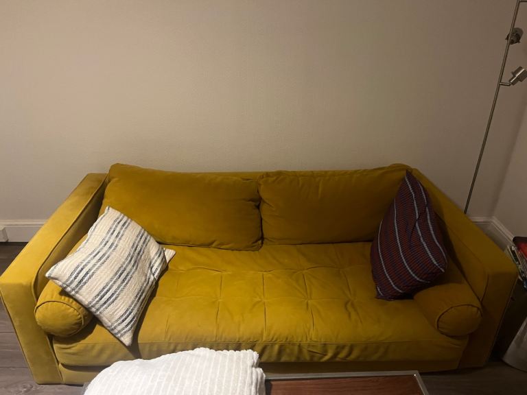 Beautiful yellow velvet sofa. Selling as I need a bigger one. Very roomy for two people.