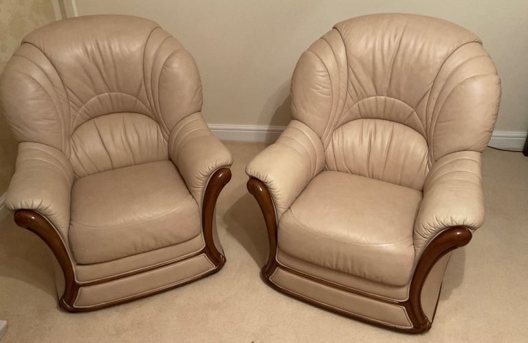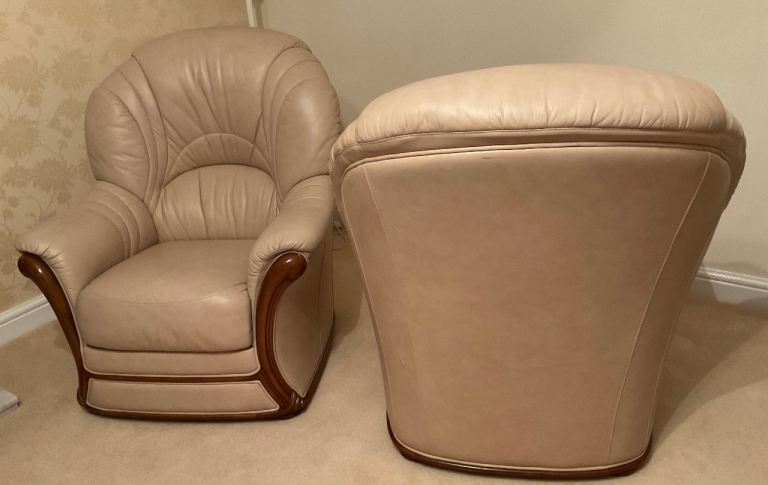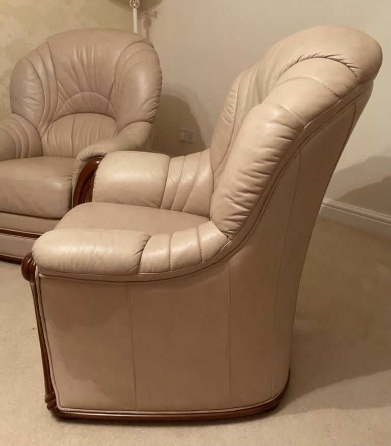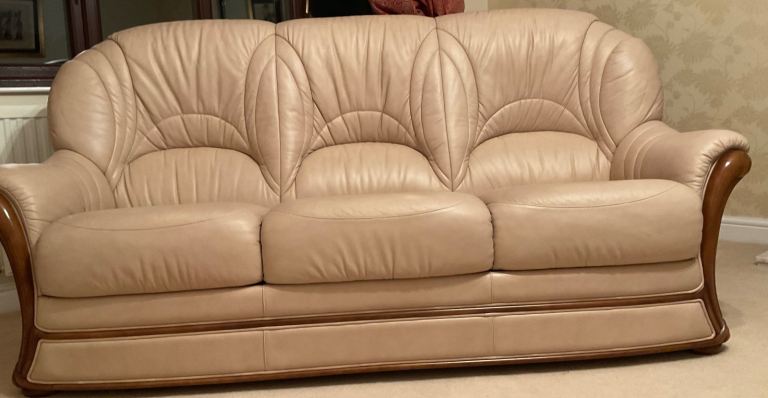 Posting for 7+ yearsBeautiful quality - traditional style - Cream Leather Three Piece Suite