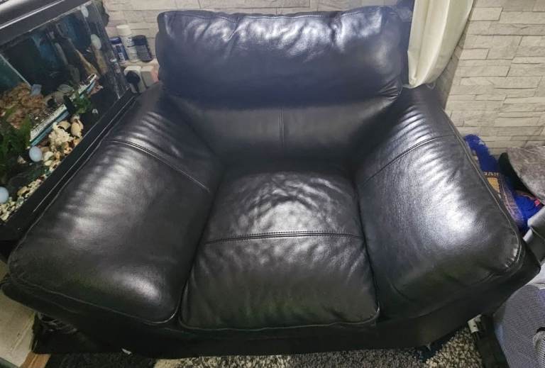 Well-loved sturdy sectional sofa, charcoal and grey with scatter cushion style back. There is a matching footstool with hidden storage available to go with it :)