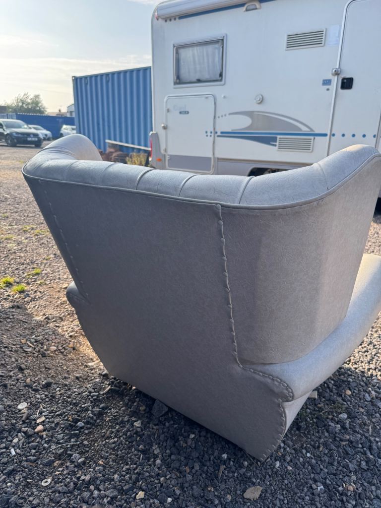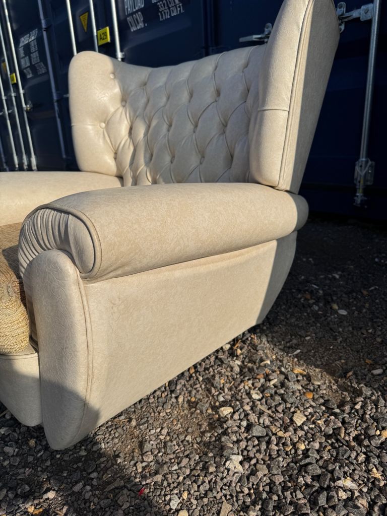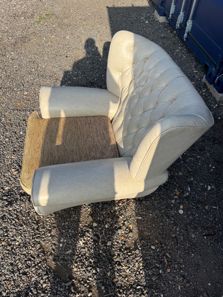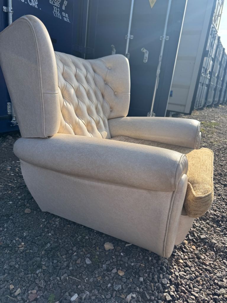 Comfortable beige armchair with tufted back. 100x100 , h81 cm floor to seat 36cm. Collection at BN164AT or can be delivered for a fee.