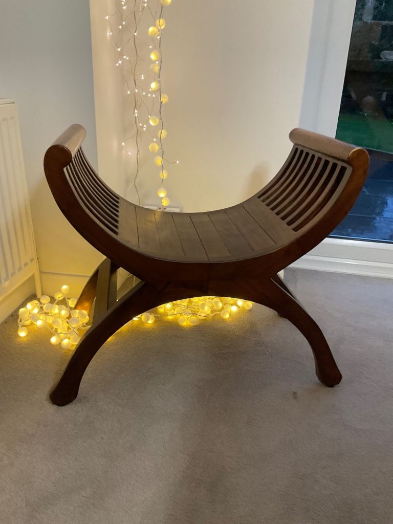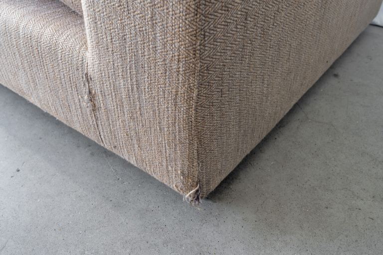 In good physical condition with some light fraying to the fabric on the right close to the base. Seat cushion cover removable for cleaning. Size of seat cushion about an inch in depth shorter than base so slight gap visible - see images.