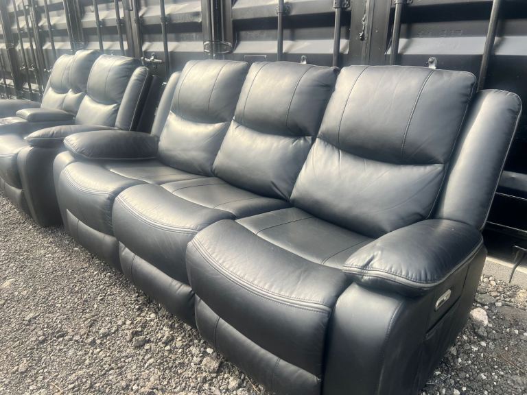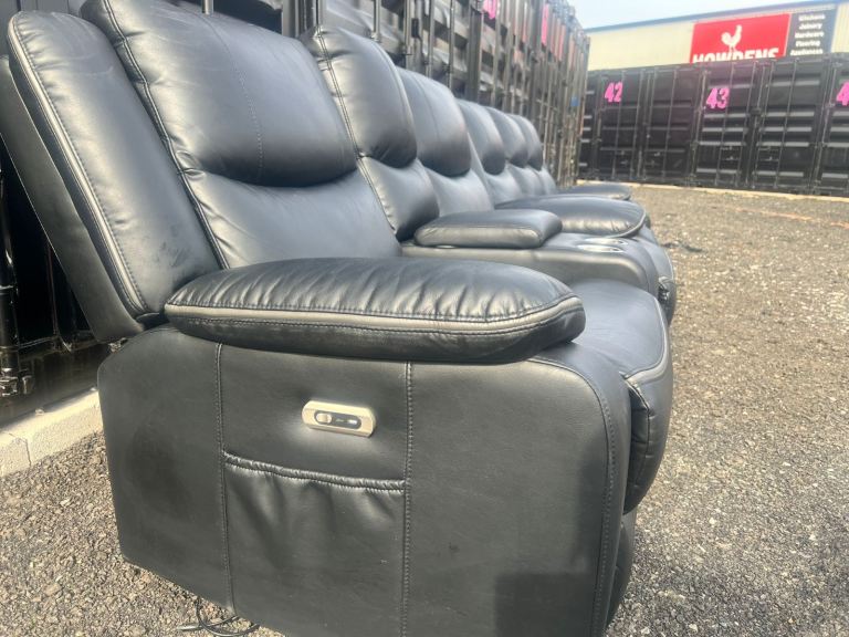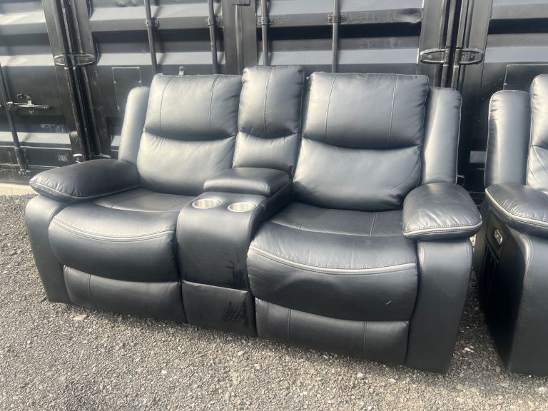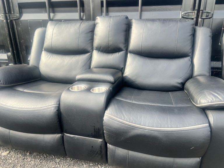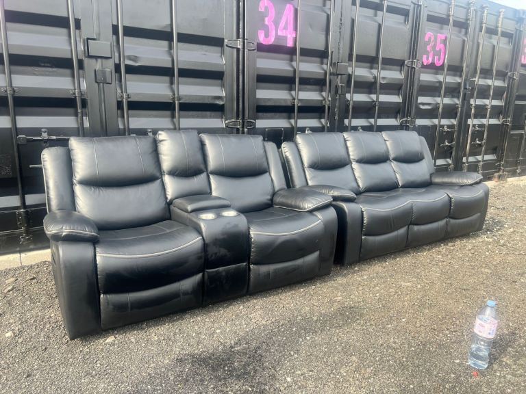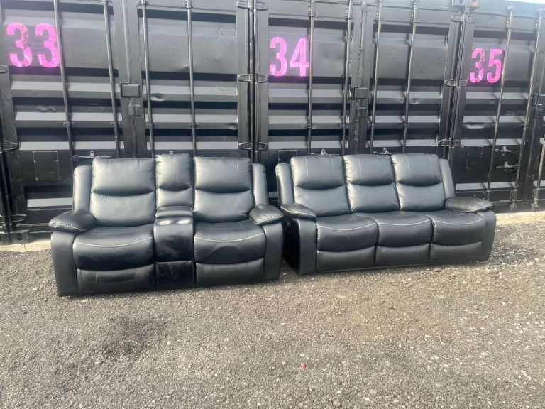 Posting for 9+ monthsBlack Electric Leather 2 & 3 Seater Sofa Set Plus Cup Holders