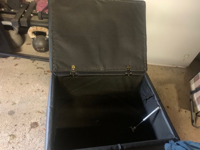 Black faux leather storage footstool for sale. The joint is broken but is fixable I’m sure. A few scruffs & scrapes but still does the job. No longer needed. £10