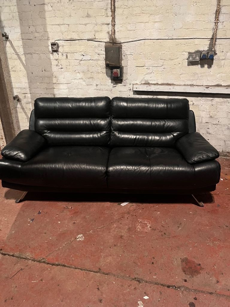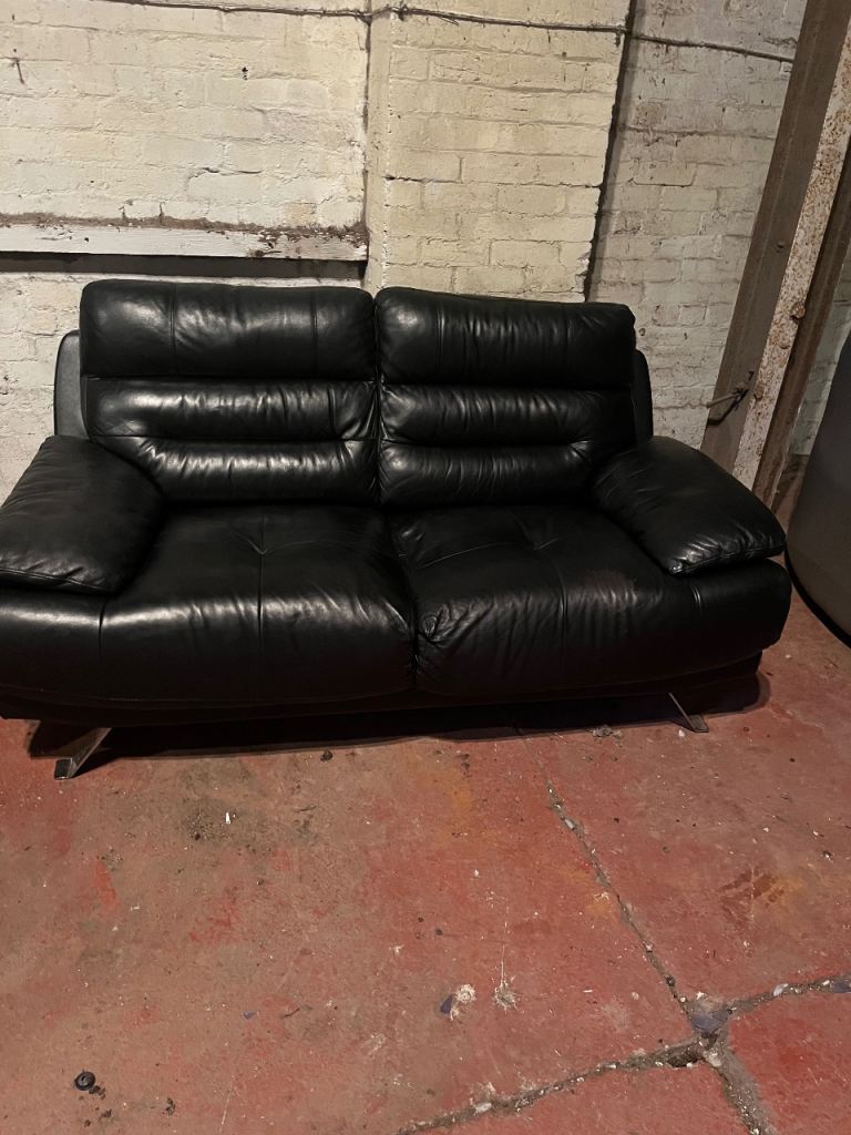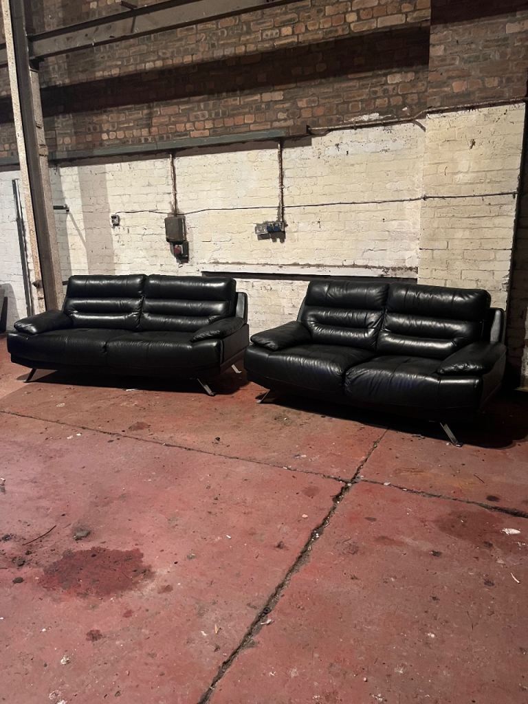 Black leather 2 + 3 seater sofa set 🚚 DELIVERY AVAILABLE 🚚