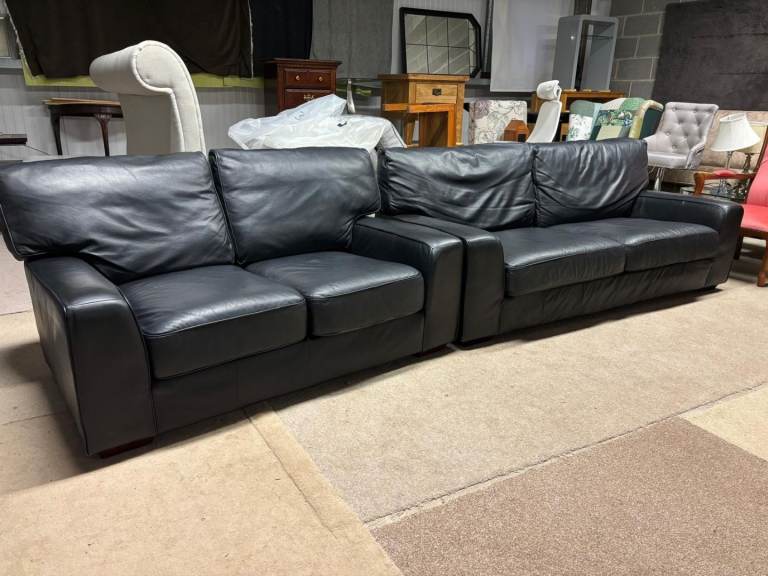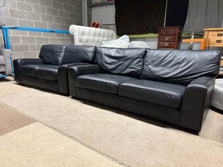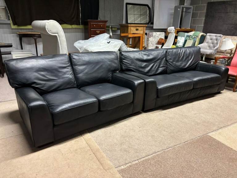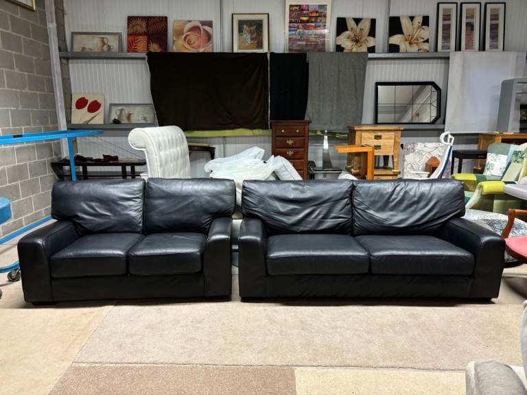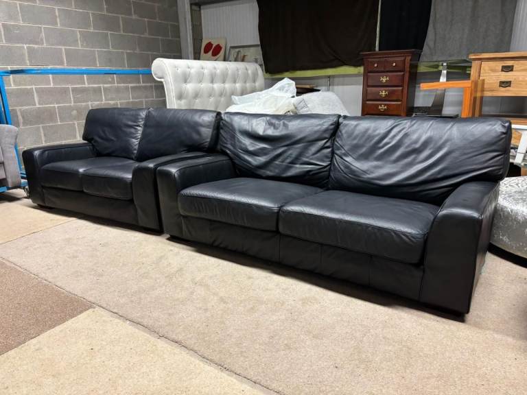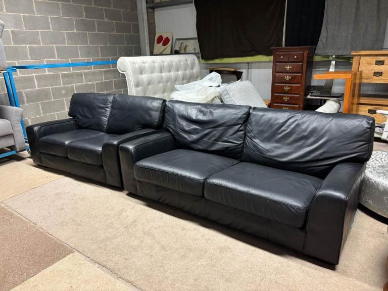Black Leather 2 and 3 Seater Sofas by M&S