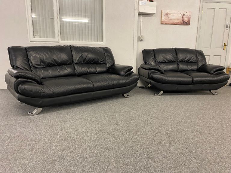 Black leather 3 & 2 sofas .
