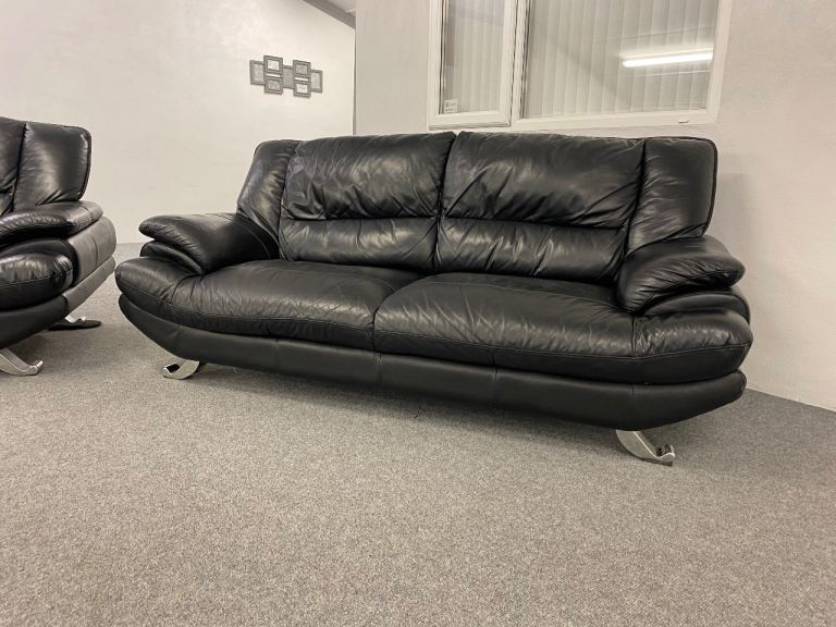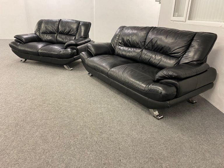 Black leather 3 & 2 sofas suite