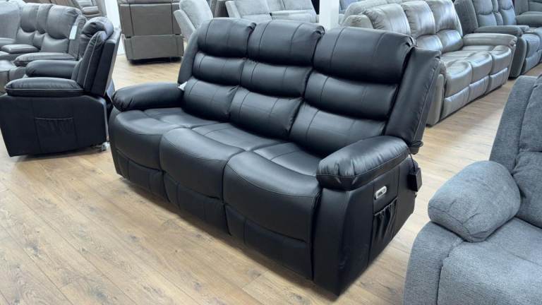 Black Leather Power Recliner 3+2 Seater Sofa Set New free local delivery ✨️£1299