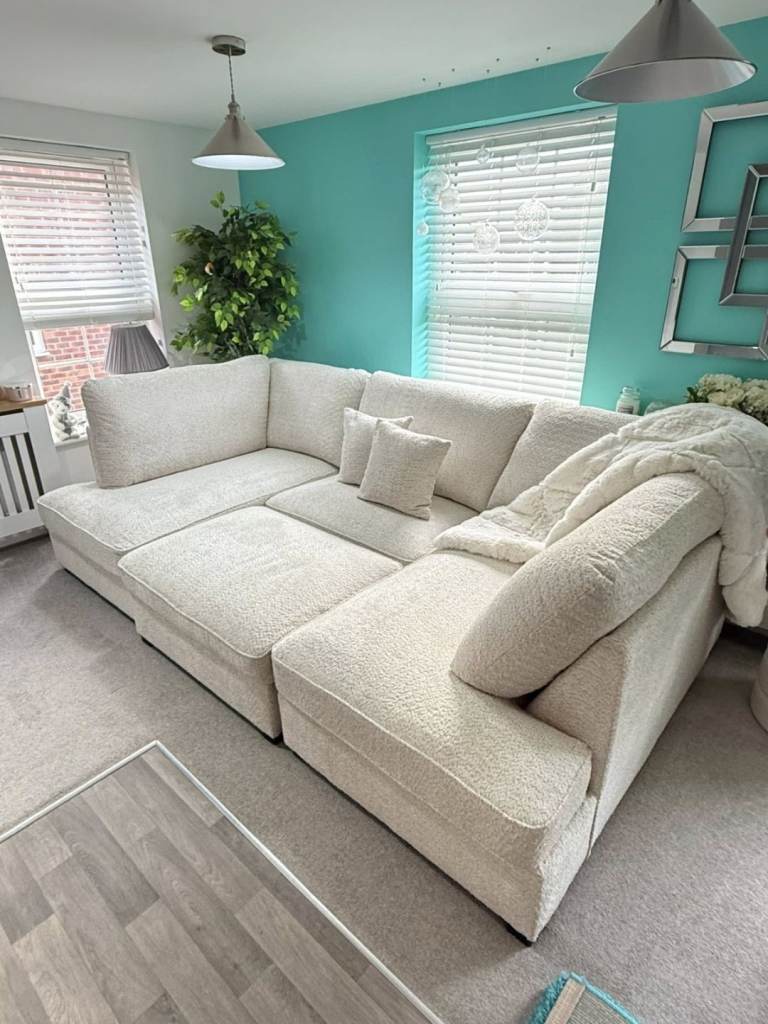 Posting for under a monthboucle Cream 6 seater u shape sofa & sofa bed