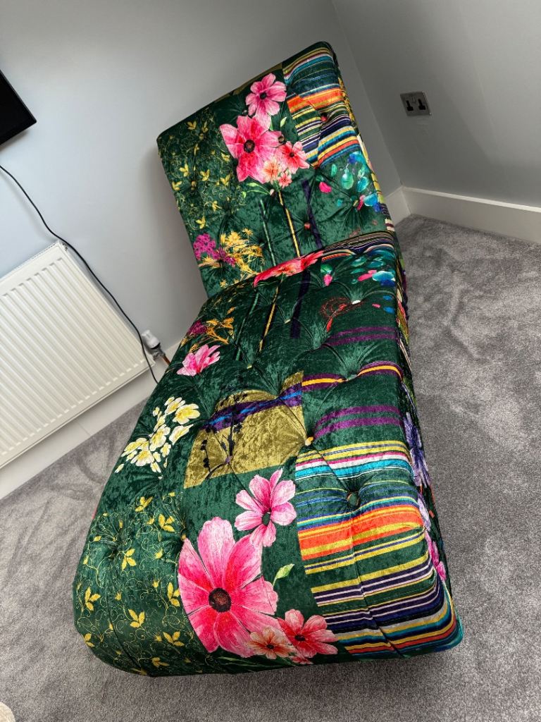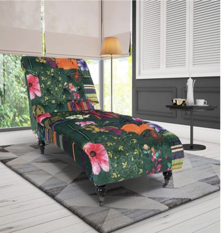 HARLEYSVILLE UPHOLSTERED CHAISE LOUNGE IN FLOWER DESIGN, ITS BRAND NEW BUT NOT IN THE BOX.