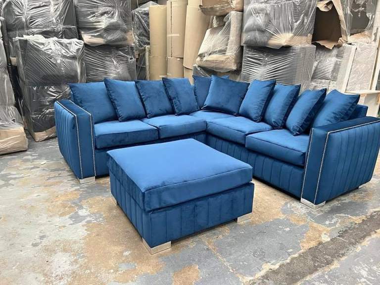 Brand New Ruby Plush Velvet 5 Seater Corner Sofa or 3+2 Seater Sofa Set ~~ Cash On Delivery