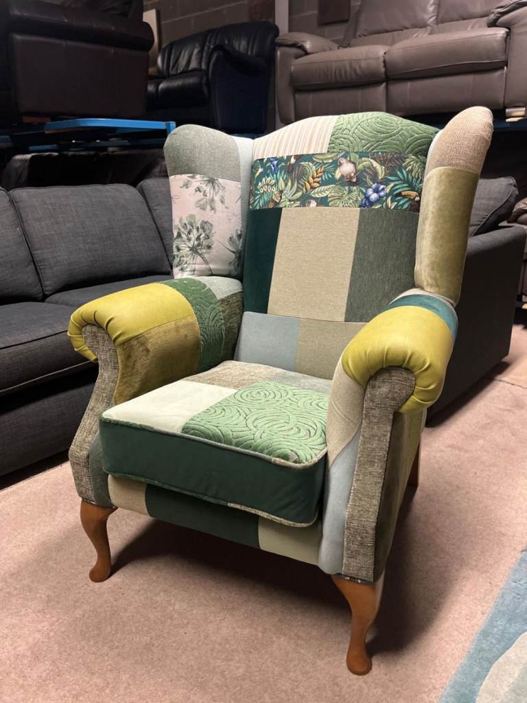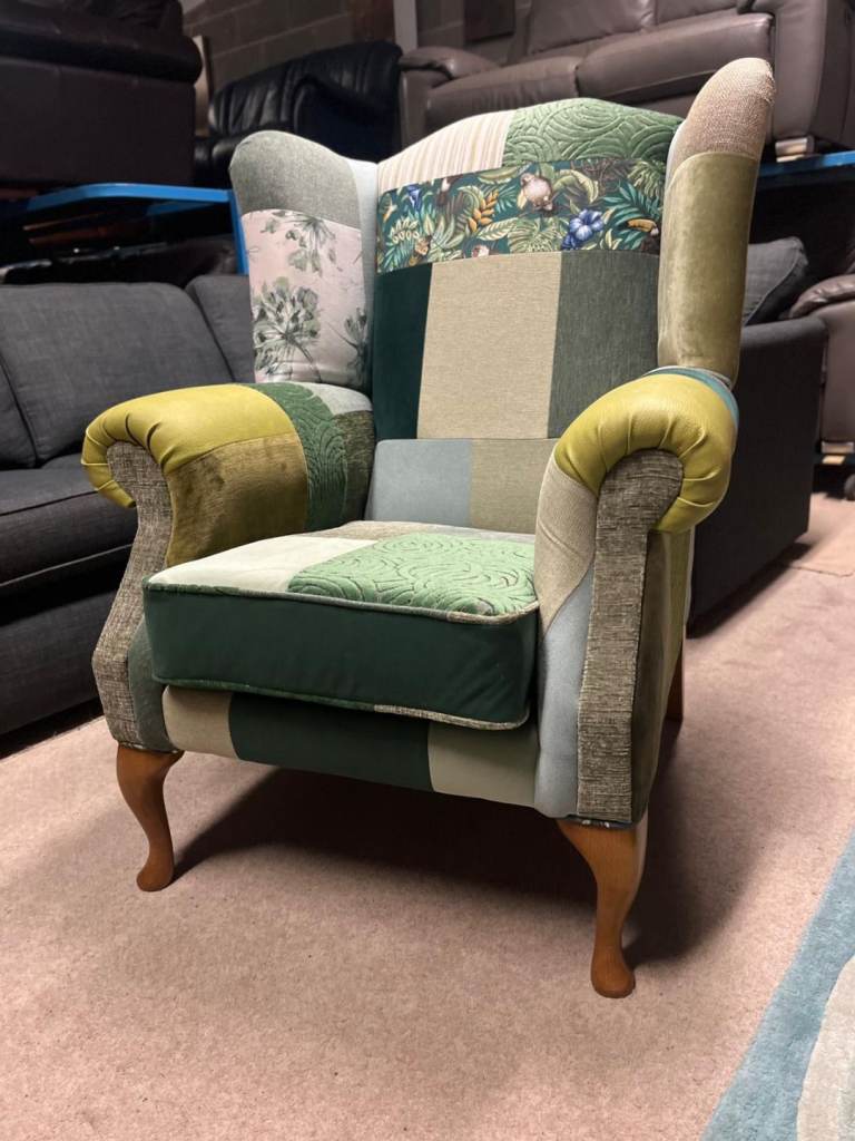 Brand New Stunning Wingback Patchwork Fabric Chair