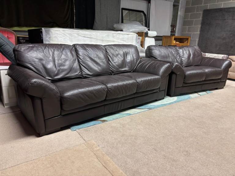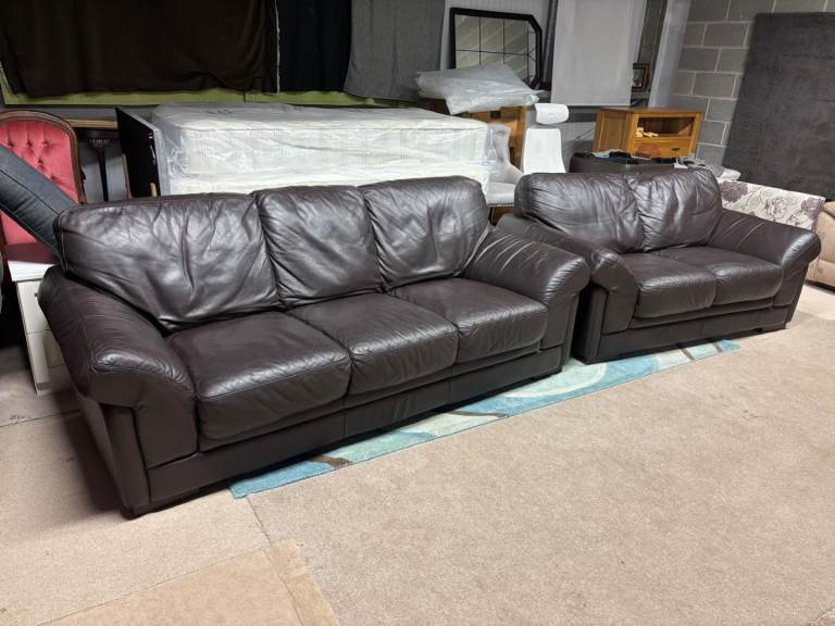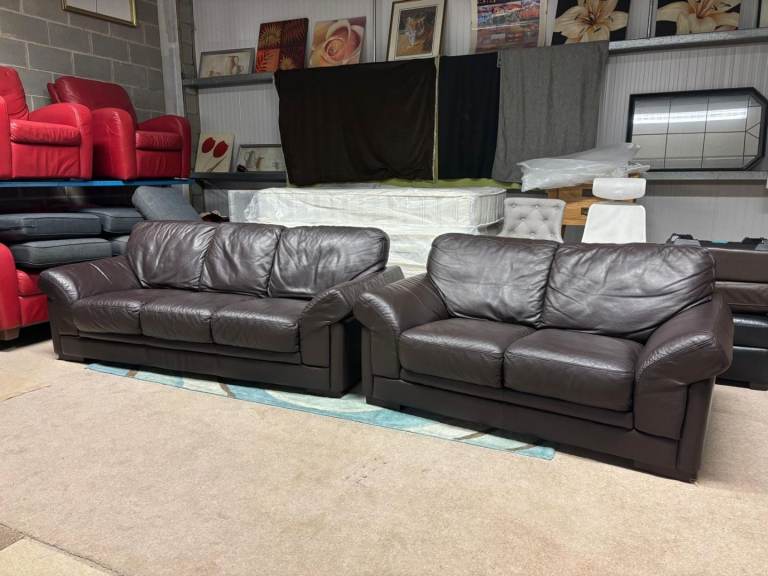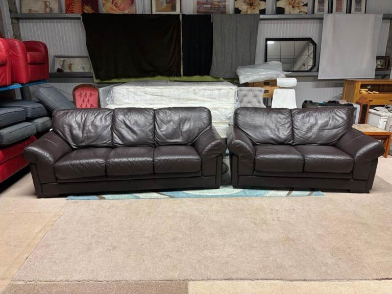 Brown Leather 2 and 3 Seater Sofas