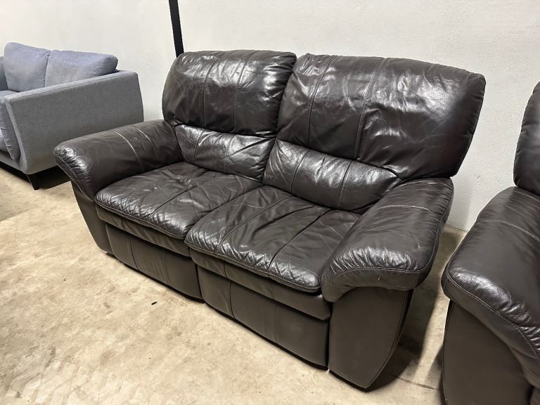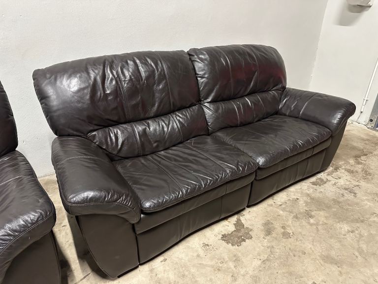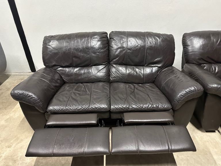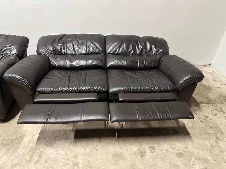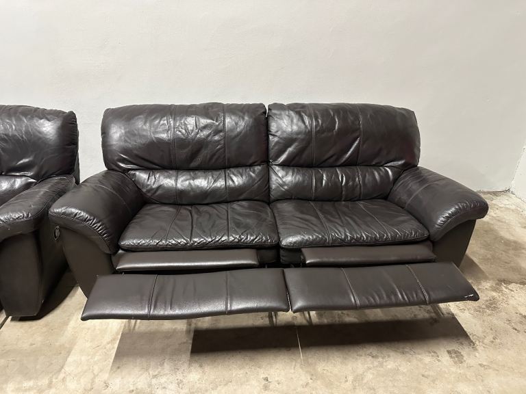 Brown leather 3 seater & 2 seater manual reclining sofa set