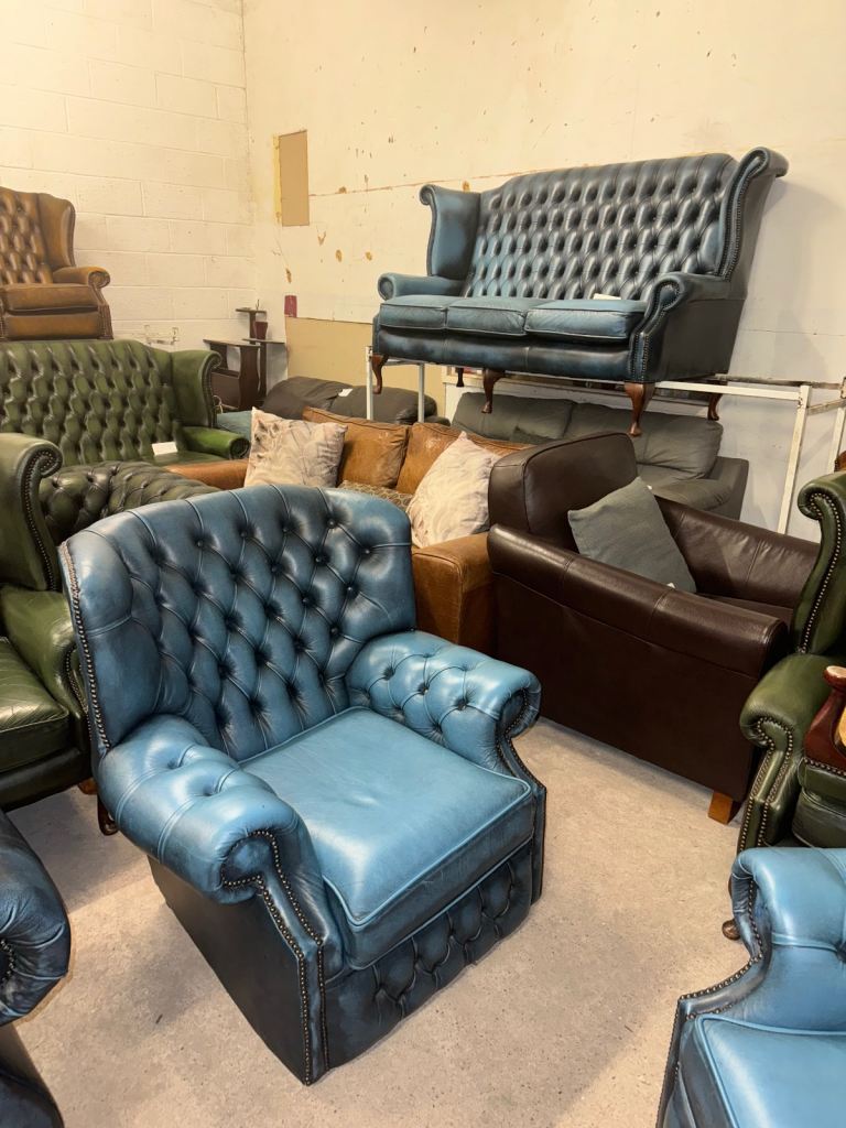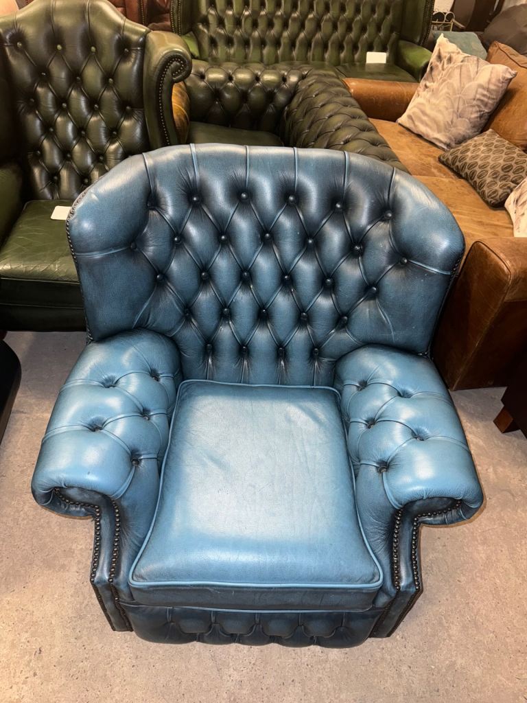 Chesterfield blue real leather wingback chair