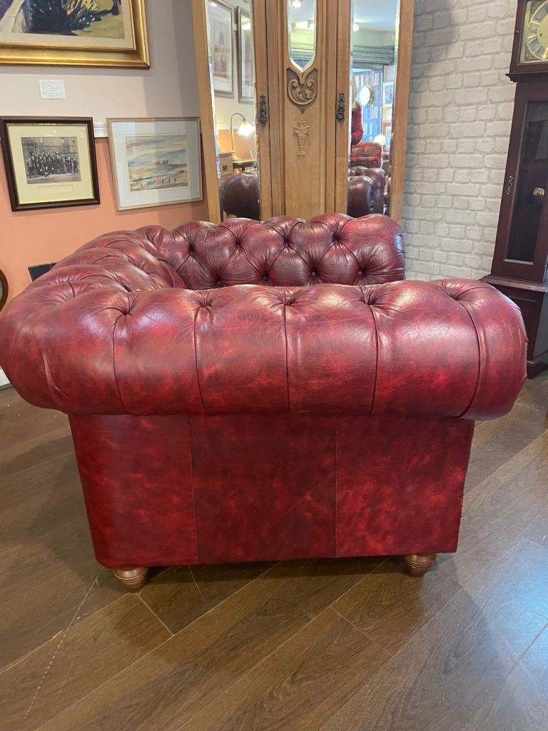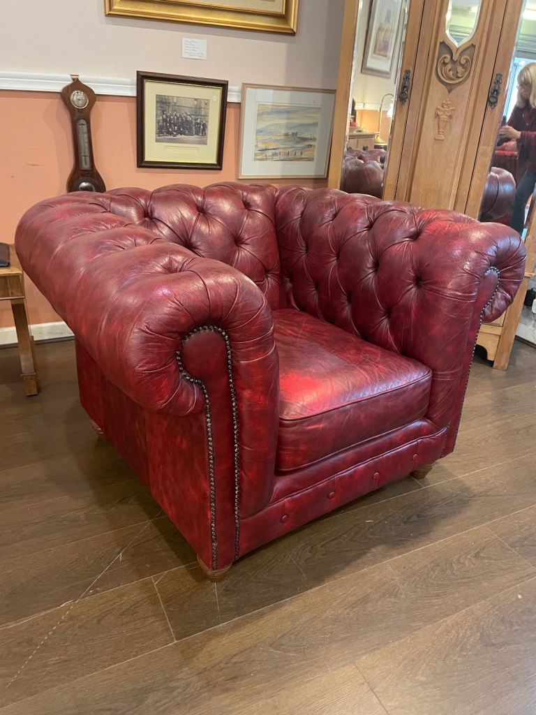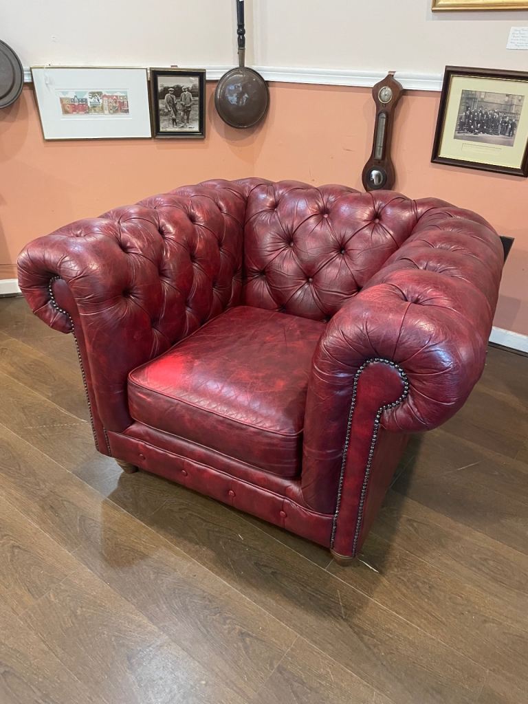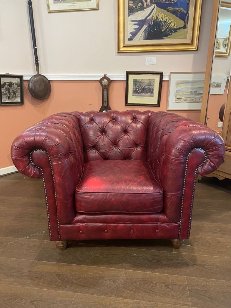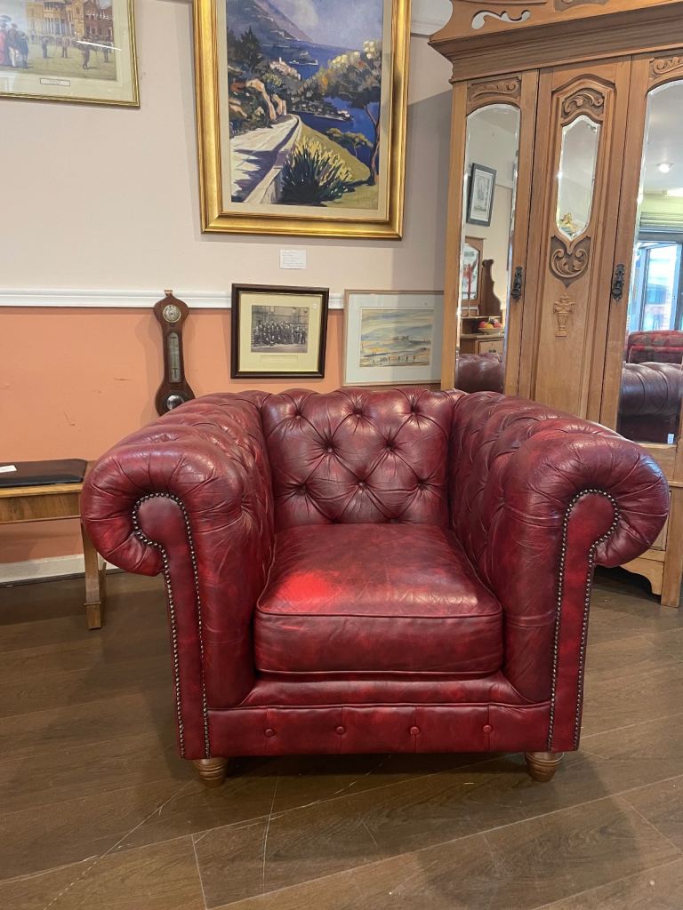 Chesterfield club armchair in dark red leather, excellent condition
