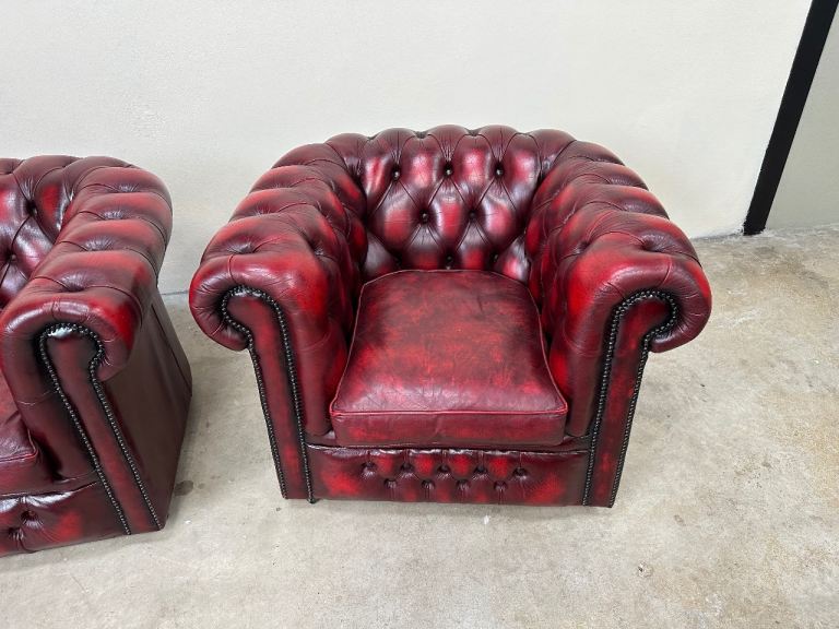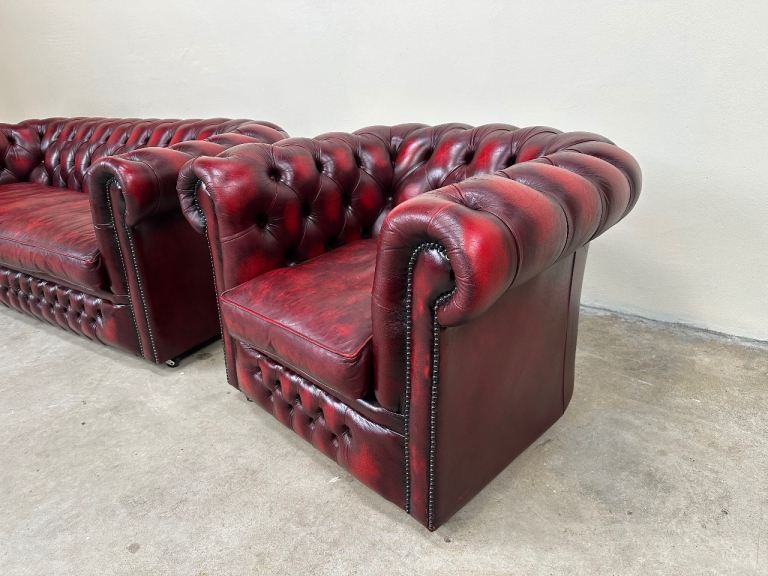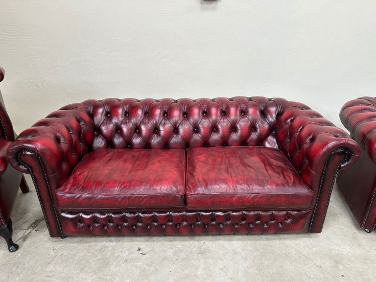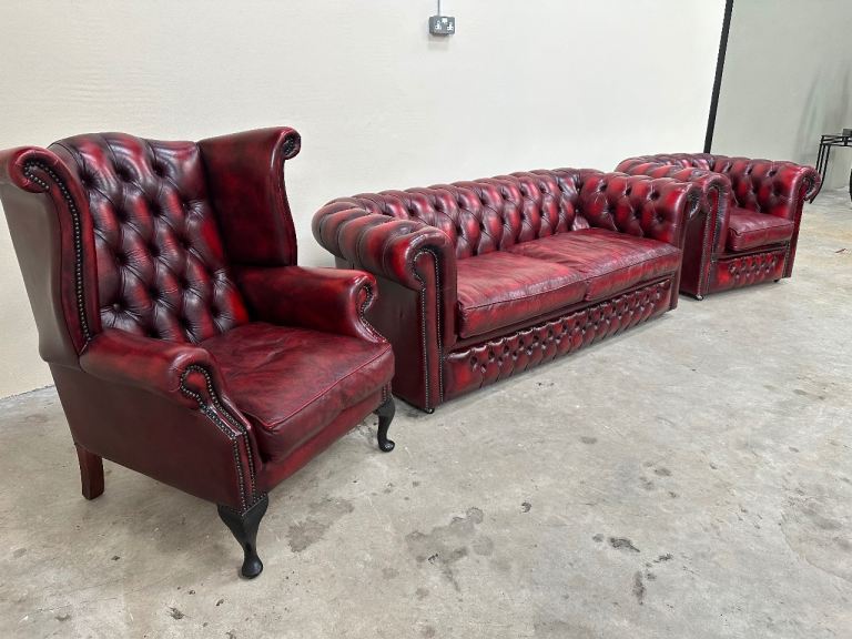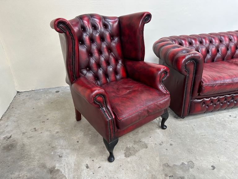Chesterfield ox blood leather 3 seater sofa & cub chair & wingback chair