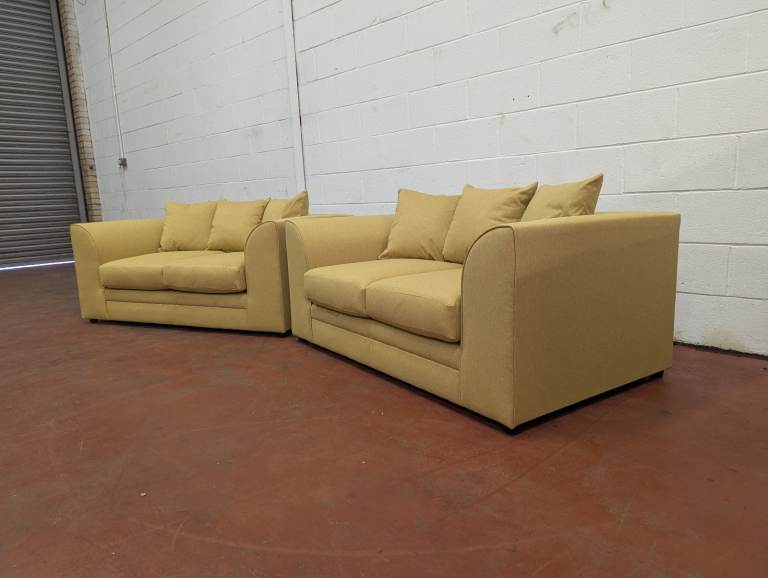 Chicago Pair Of 2 Seat Sofas In Mustard Fabric
