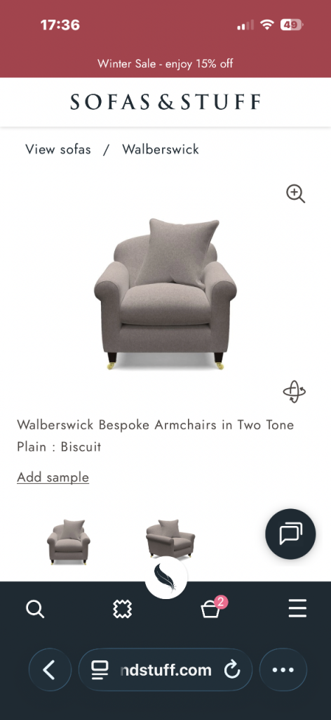Posting for 13+ yearsClever velvet sofa and armchair from Sofas and stuff.