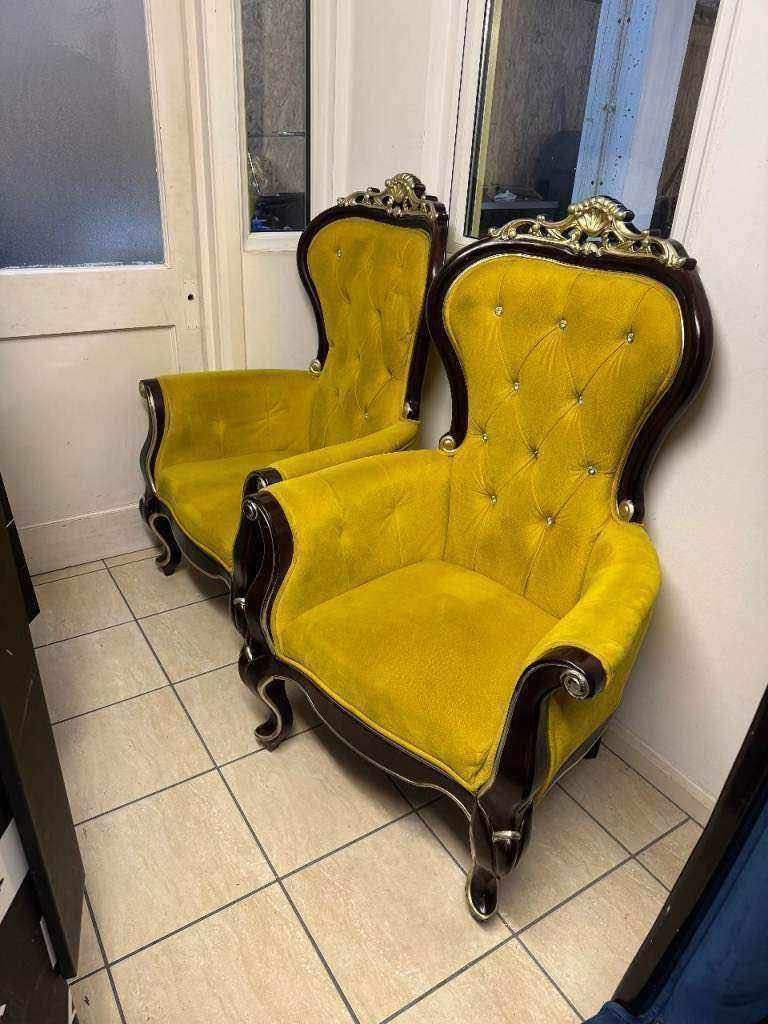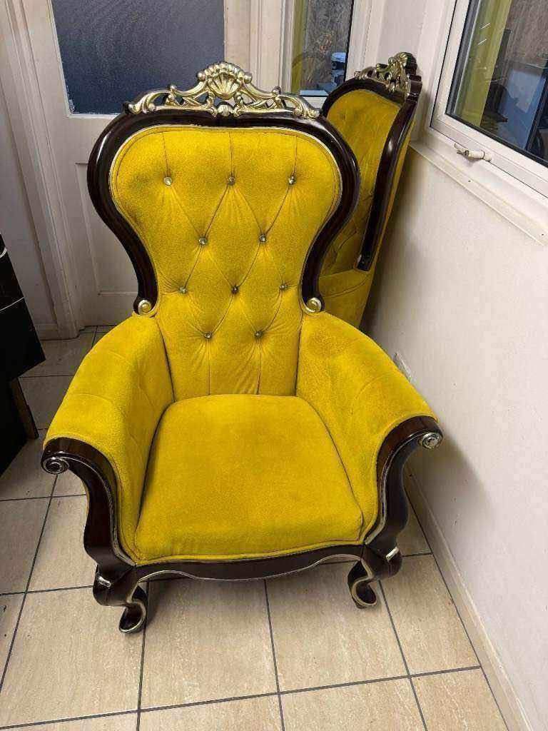 Collection from Croydon - Victorian style upholstered yellow retro chair armchair