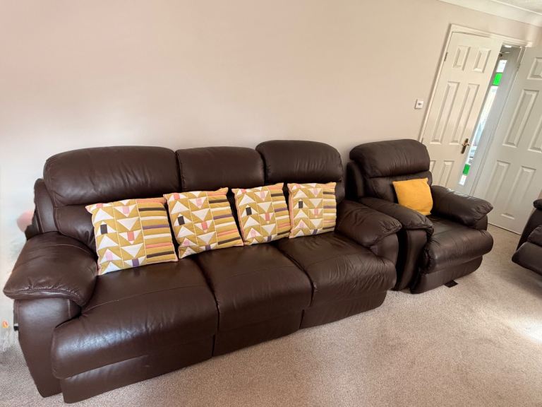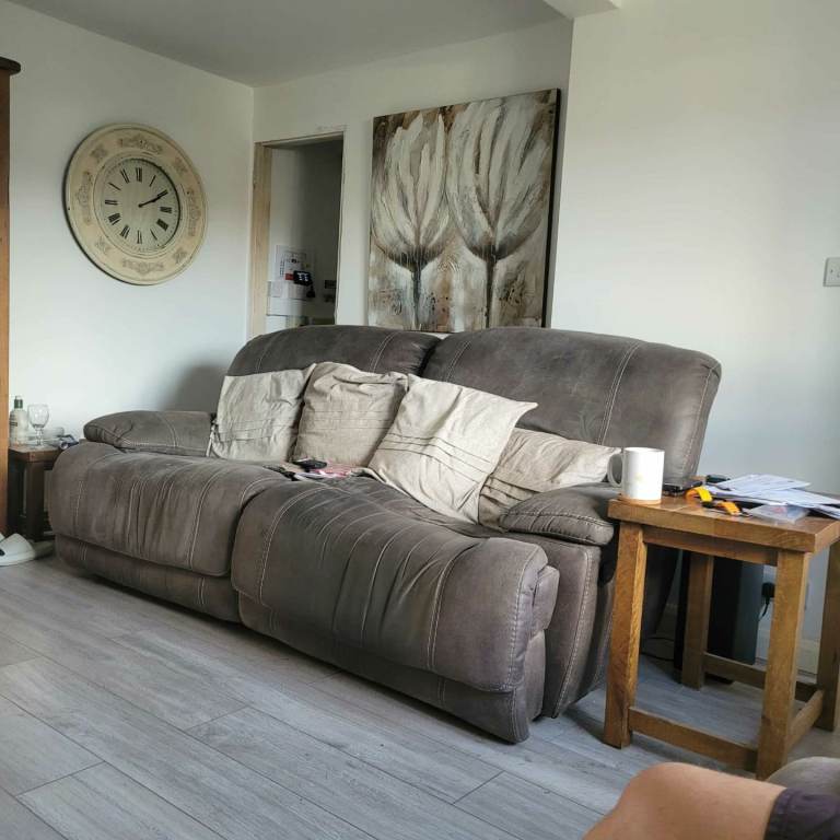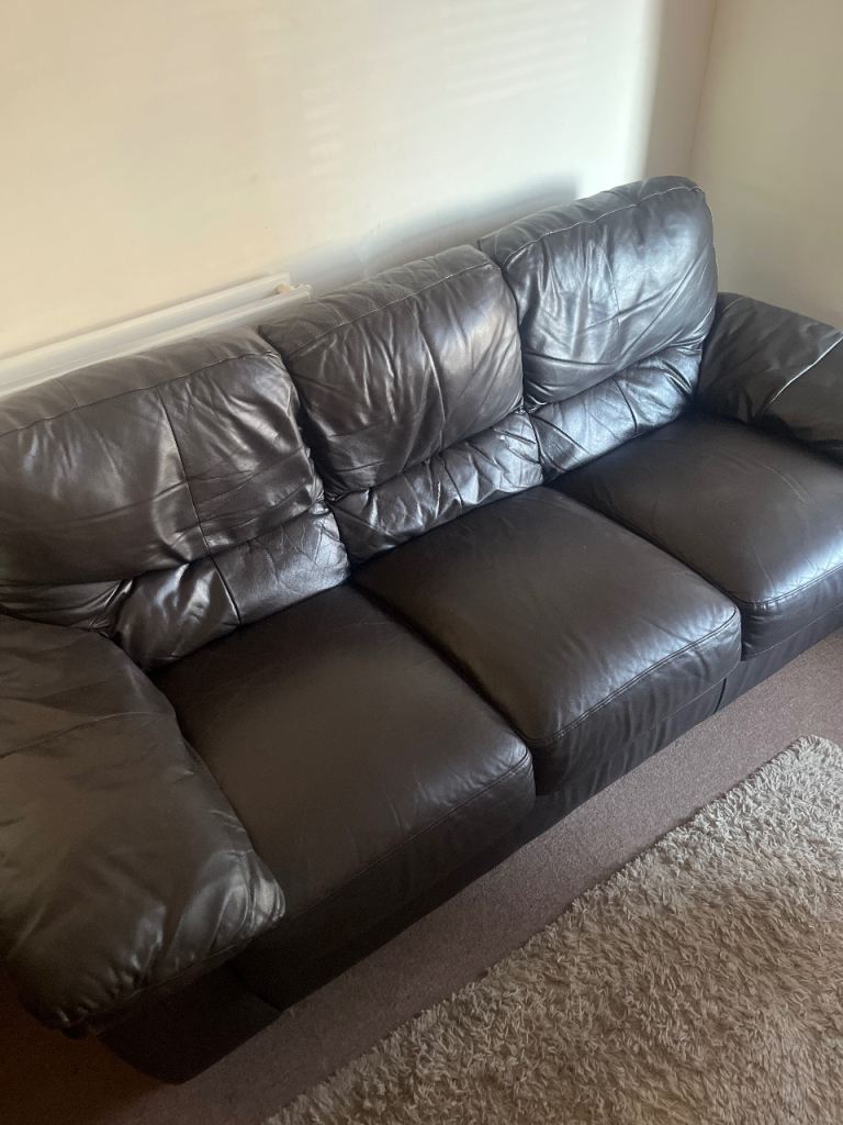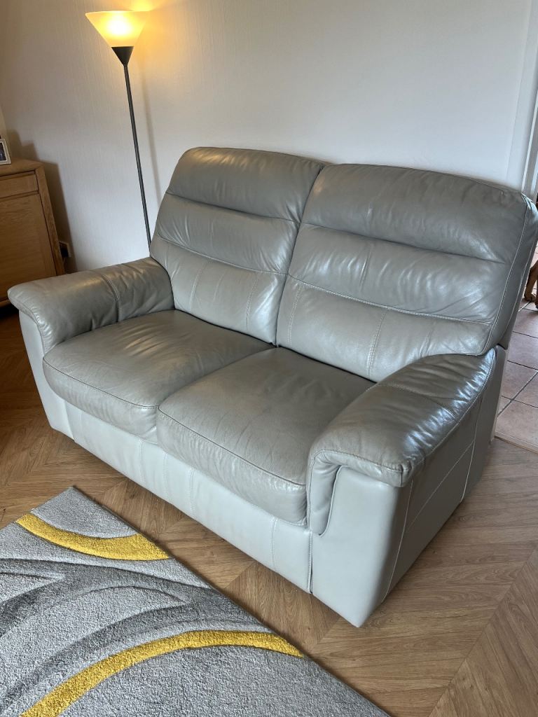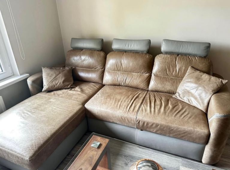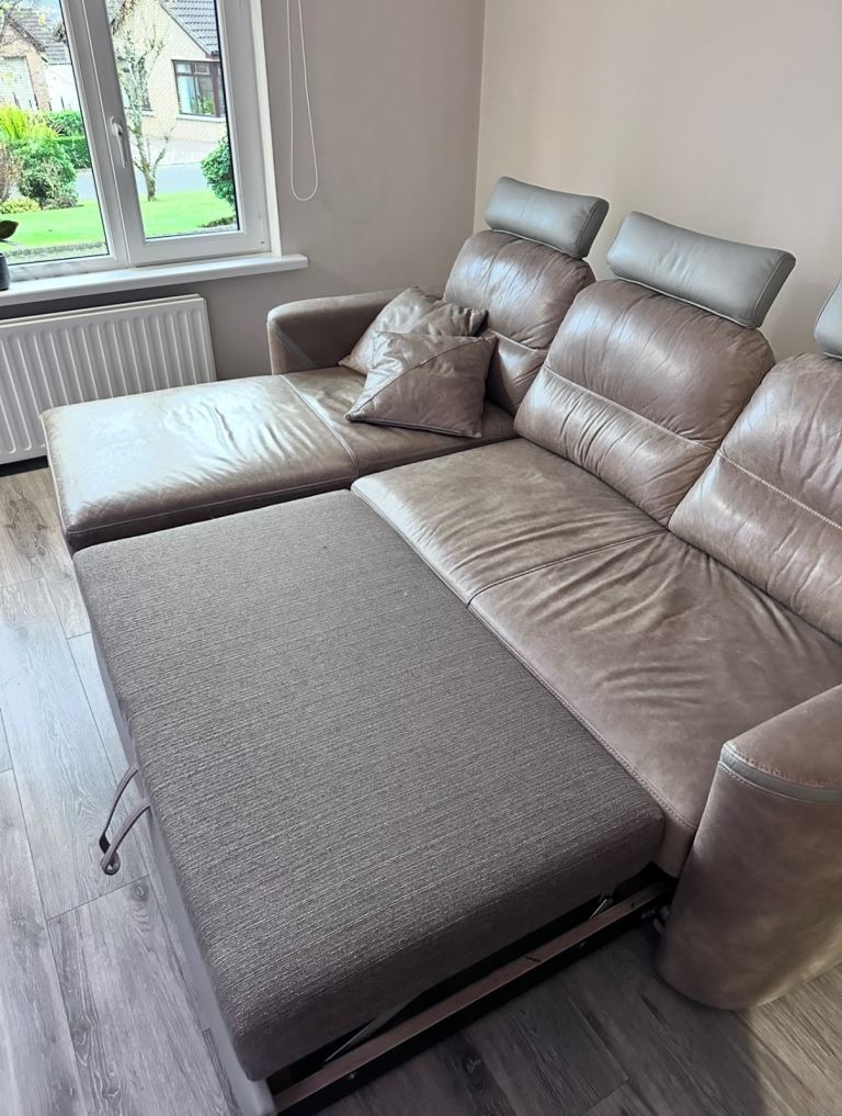 Two tone grey and brown leather sofa. Can be made into a double bed. Collection only