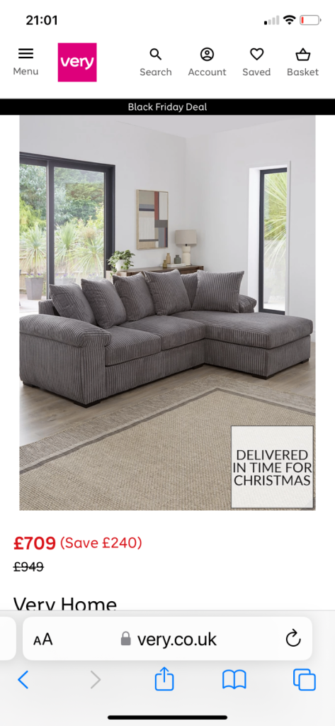 Grey jumbo cord. Excellent condition. Collect from Newtyle.