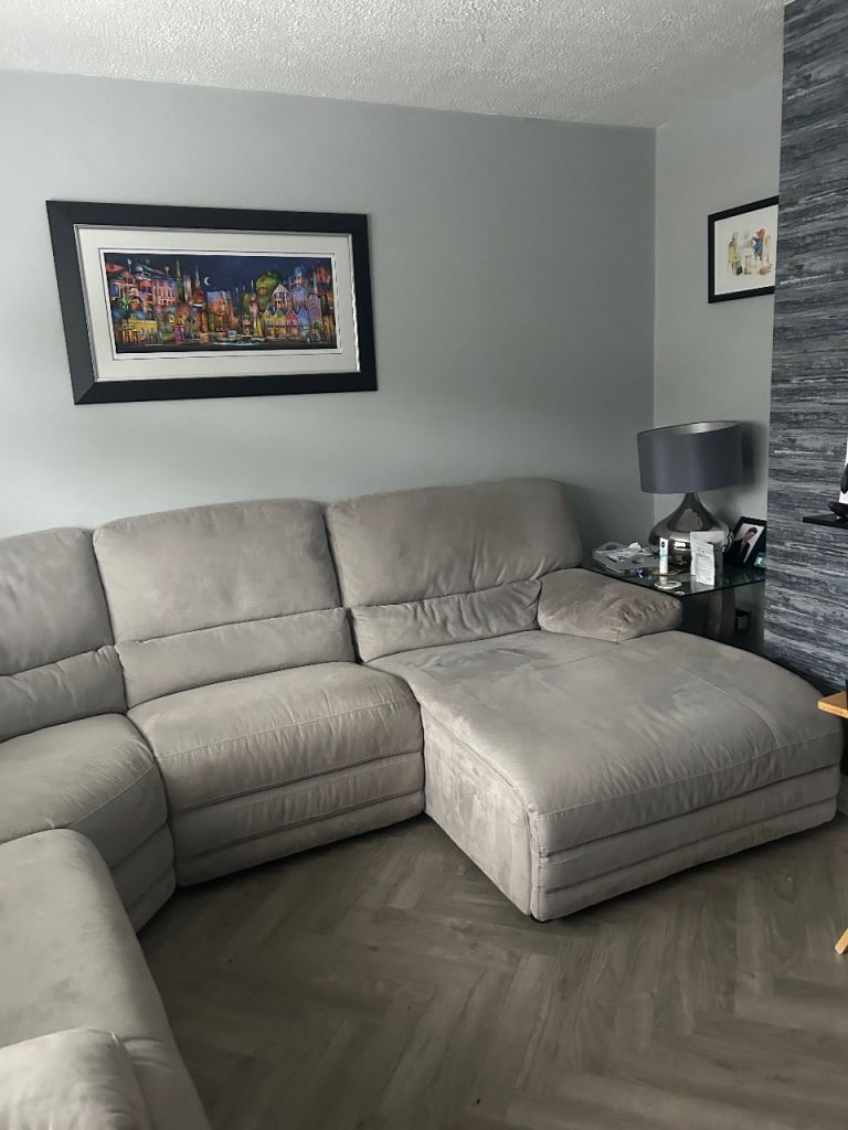 Light Grey corner suite large , in four parts , bought in Harvey's