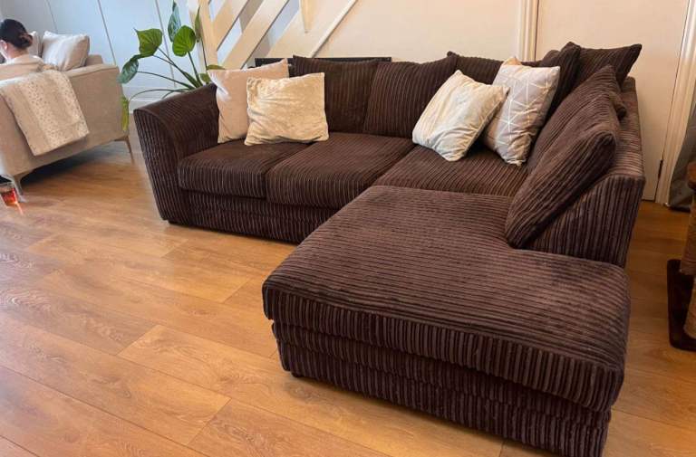Cosy Brown Cord Chaise Sofa with Accent Cushions
