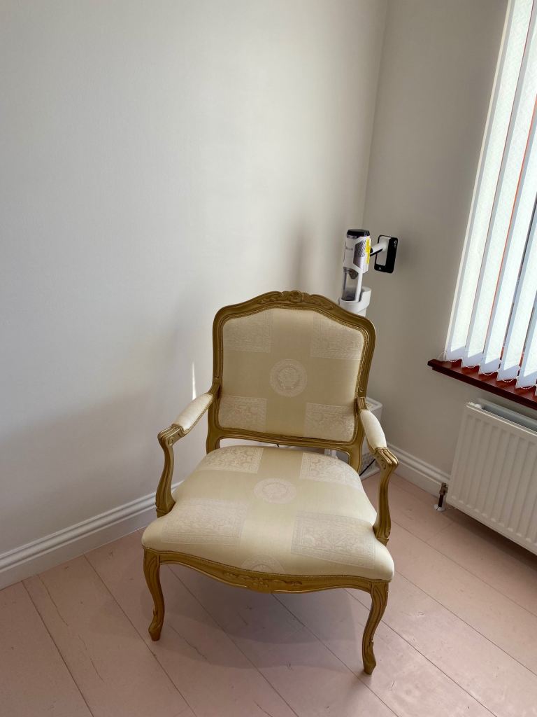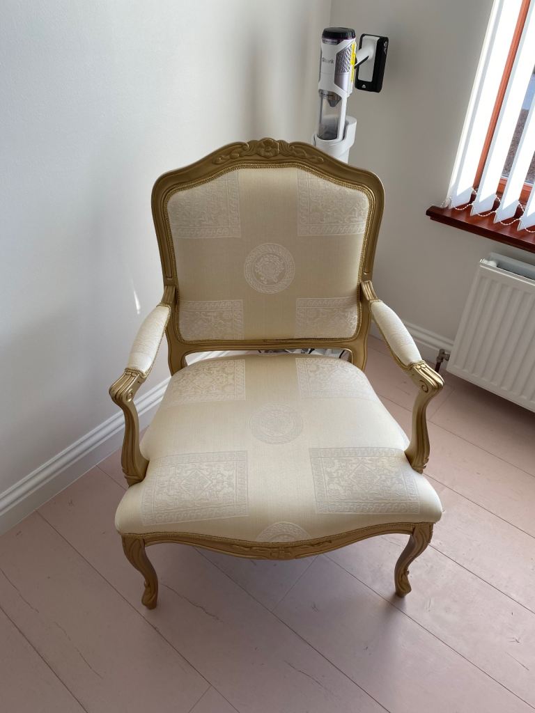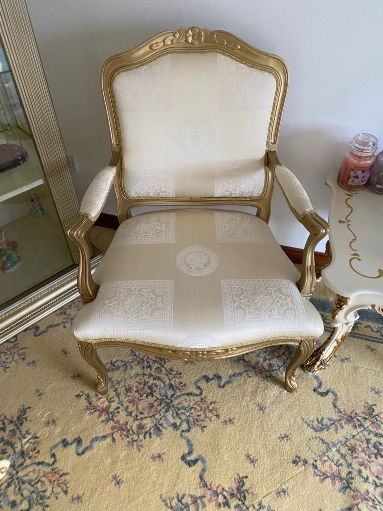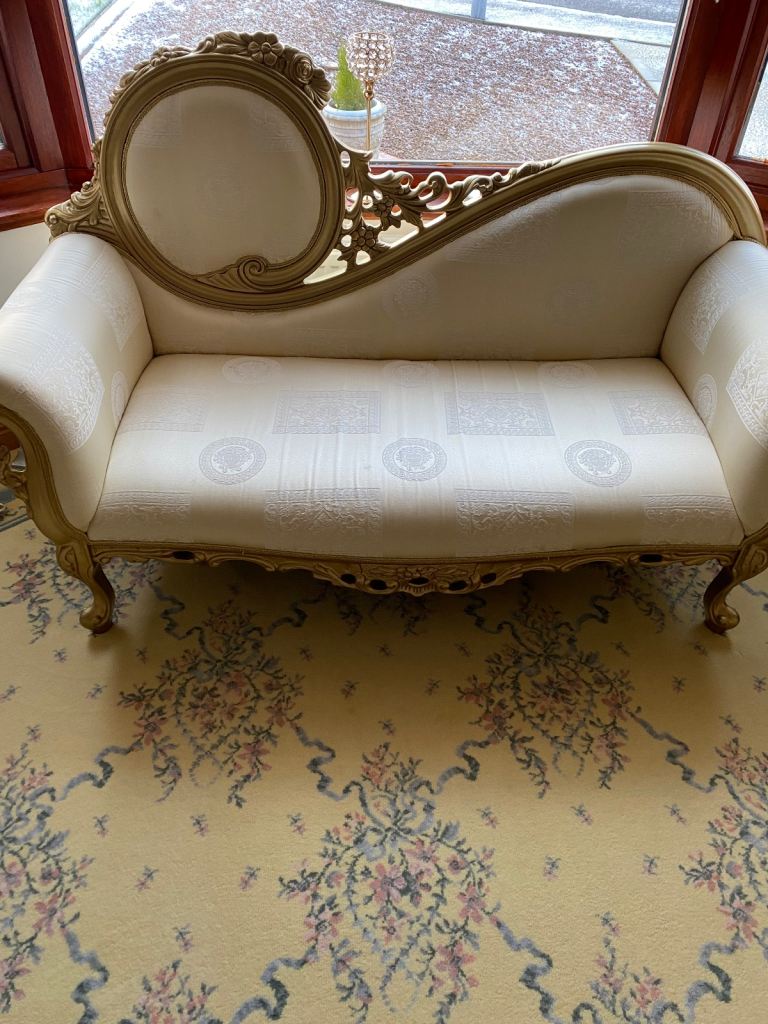 Cream gold chaise lounge sofa suite Versace fabric matching chair available