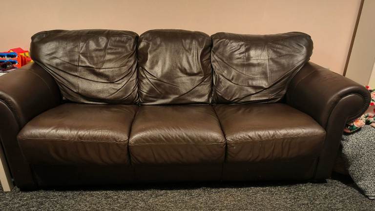 Posting for 10+ yearsDark Brown Leather 3 Seat Sofa and Armchair