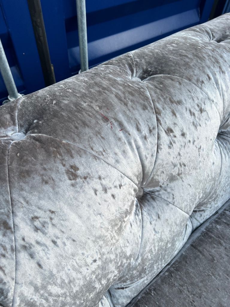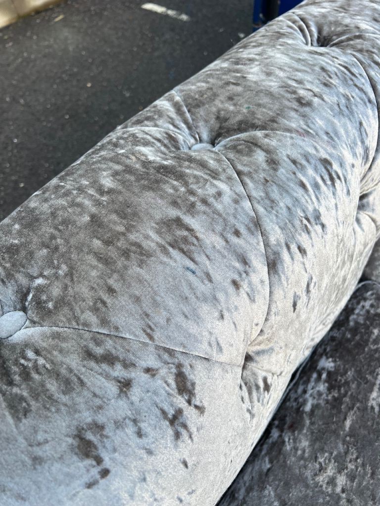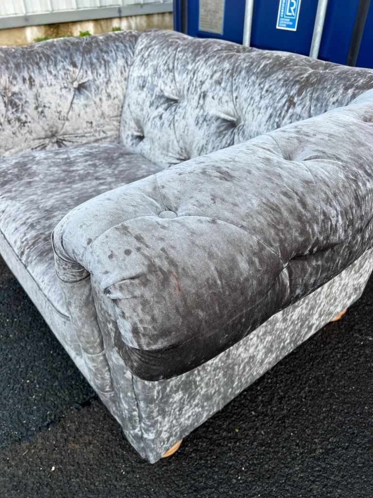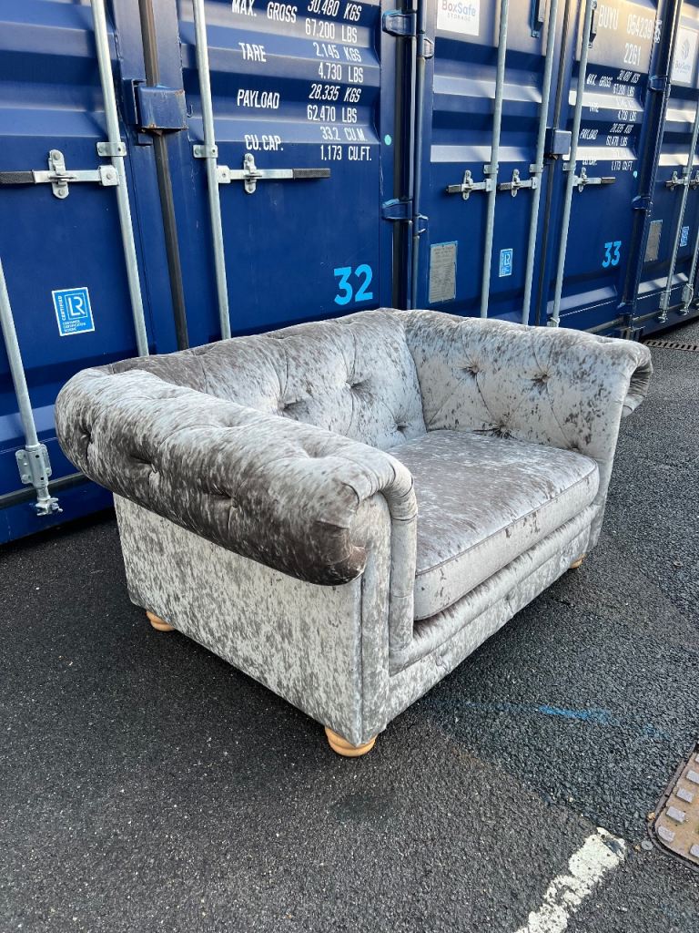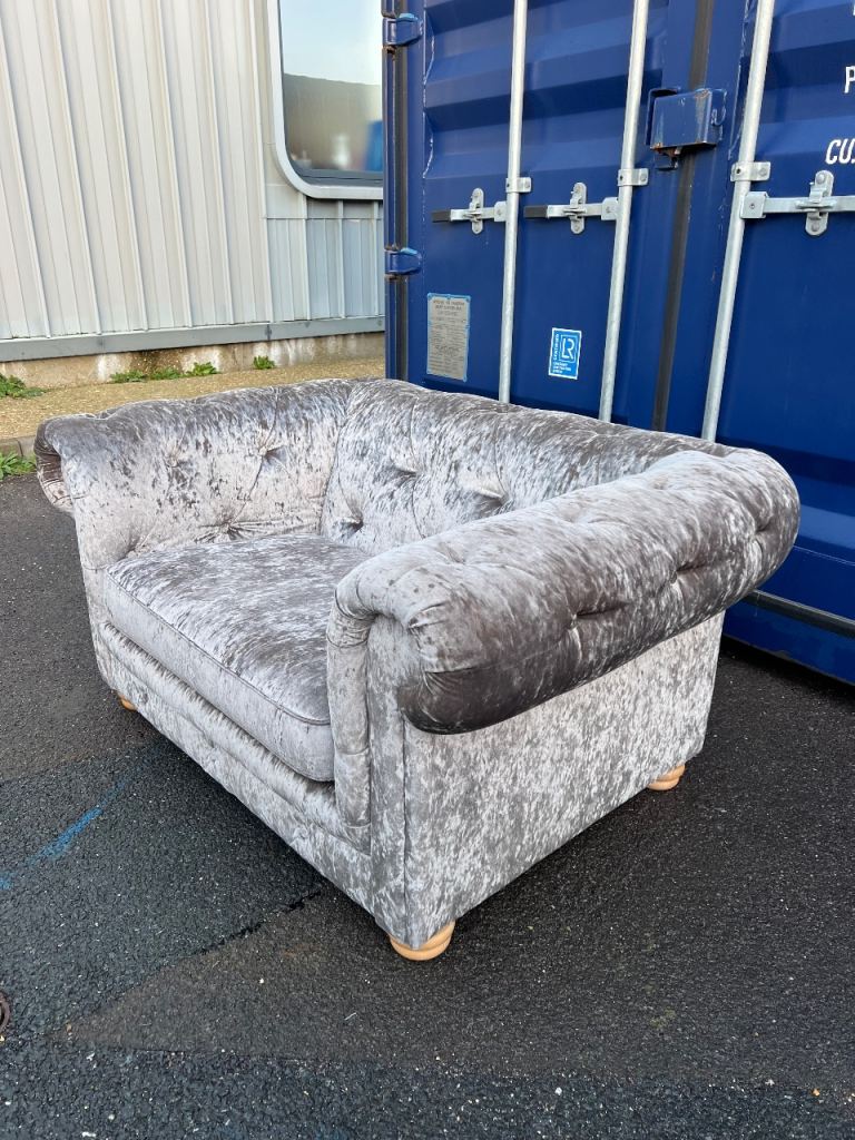 DFS grey crushed velvet chesterfield cuddle chair £100 (free delivery Weymouth Portland Dorchester) good condition general wear and tear as to expected see pictures.
