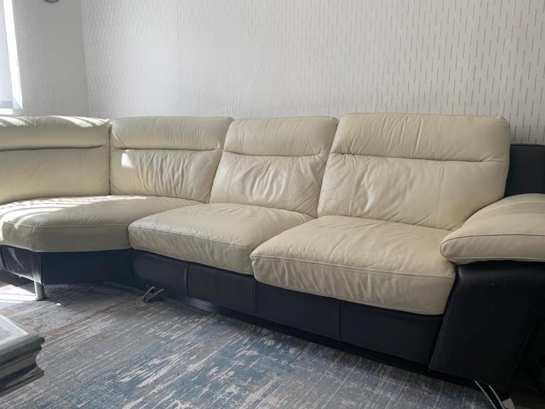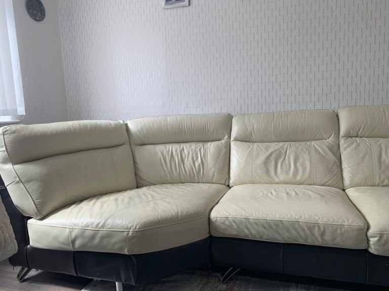 Used but very good condition leather DFS corner sofa. Large 3 seats. No pets. Beige colour