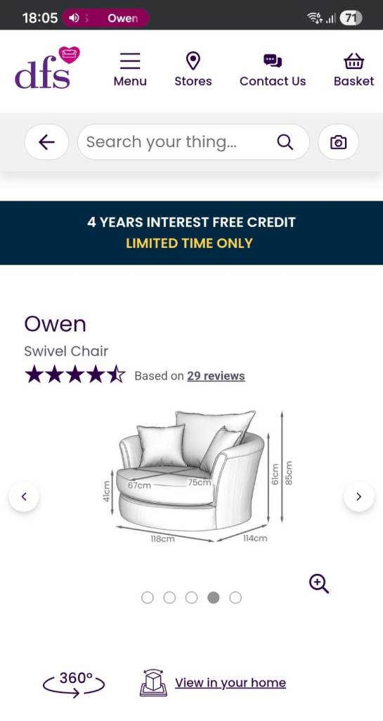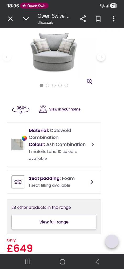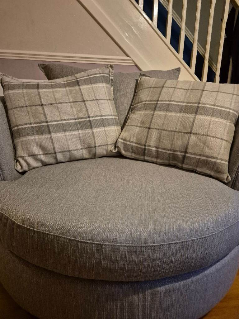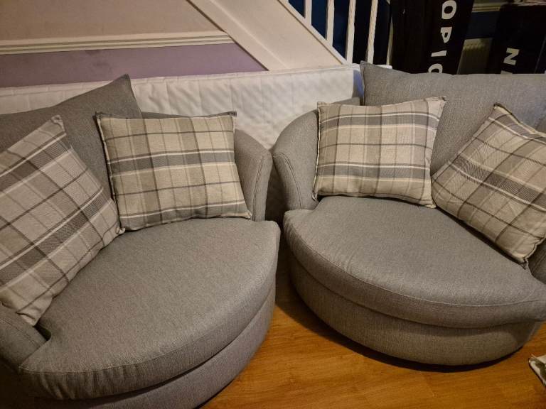 Set of two DFS 'Owen' swivel chairs. Grey. Currently £649 each from DFS. To be collected. No time wasters.